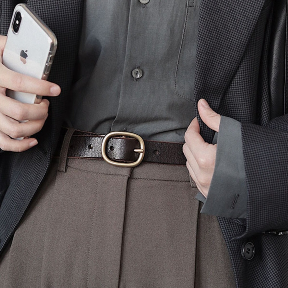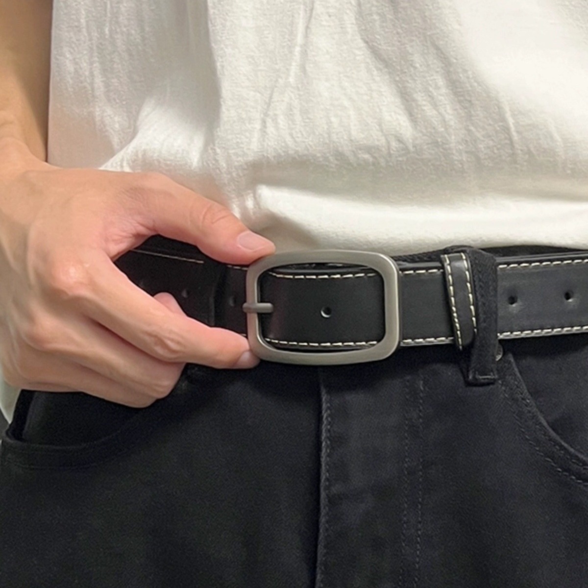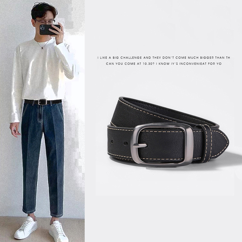 新型男性ベルトシンプルファッション通勤香港風ズボンベルト男性モデル韓国版学生個性ズボンベルト細い