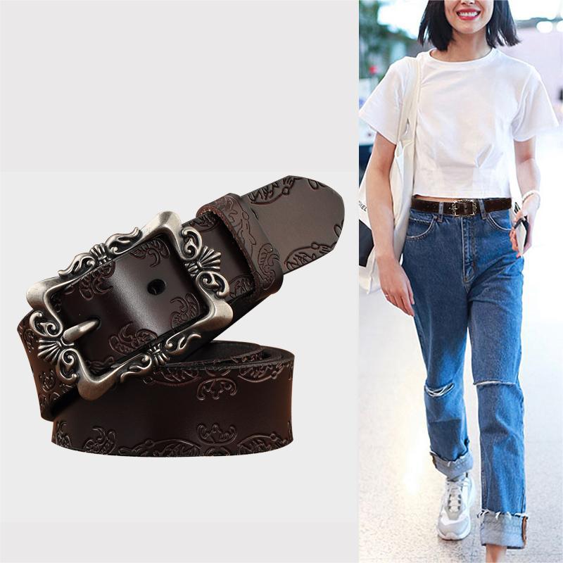 2024新型女性ベルトにレトロなベルトをつけた黒いファッションins風の装飾にジーンズのファッションがついている