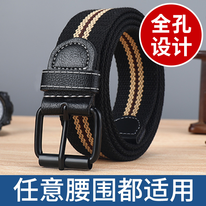 新型穴なし延長針バックルキャンバス編みベルト男性カジュアル工装ベルト学生韓国版ジーパンベルト
