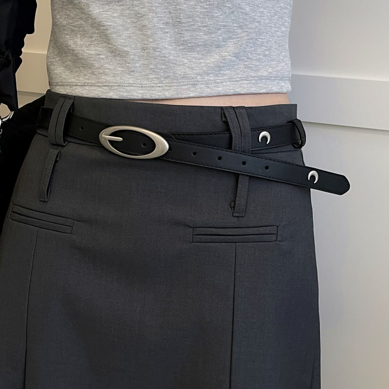 新型の韓系の小さいベルトの細いベルトの女性のシンプルな百合の銀のボタンの金属の輪の韓国の新型のjkのスカートの装飾