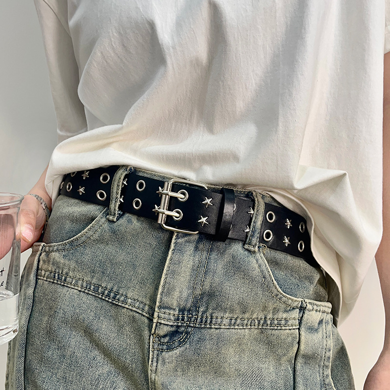 25年新作男女ワイド星ベルトギャルパンク風二列穴飾りアメリカンジーンズベルトブーム