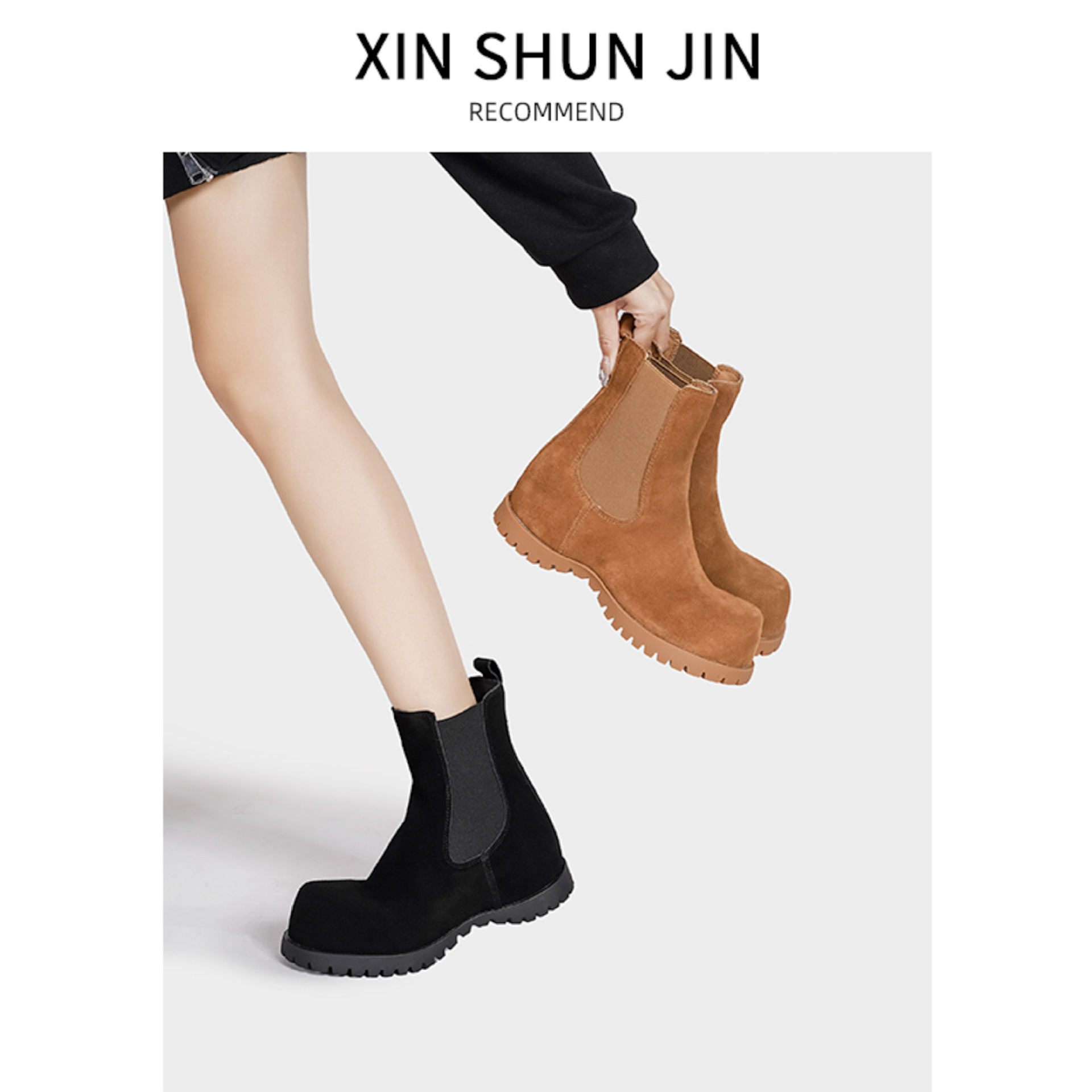現物ヨーロッパ駅の新型ベルベットのマーティンブーツの女性英倫風の厚い底が高くなりました。