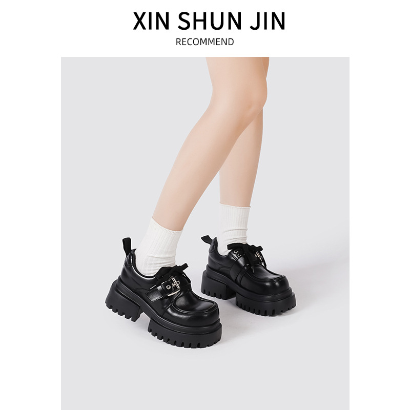楽福靴女2025春の新型甘クールな布ロック風の厚い底が高くなりました。