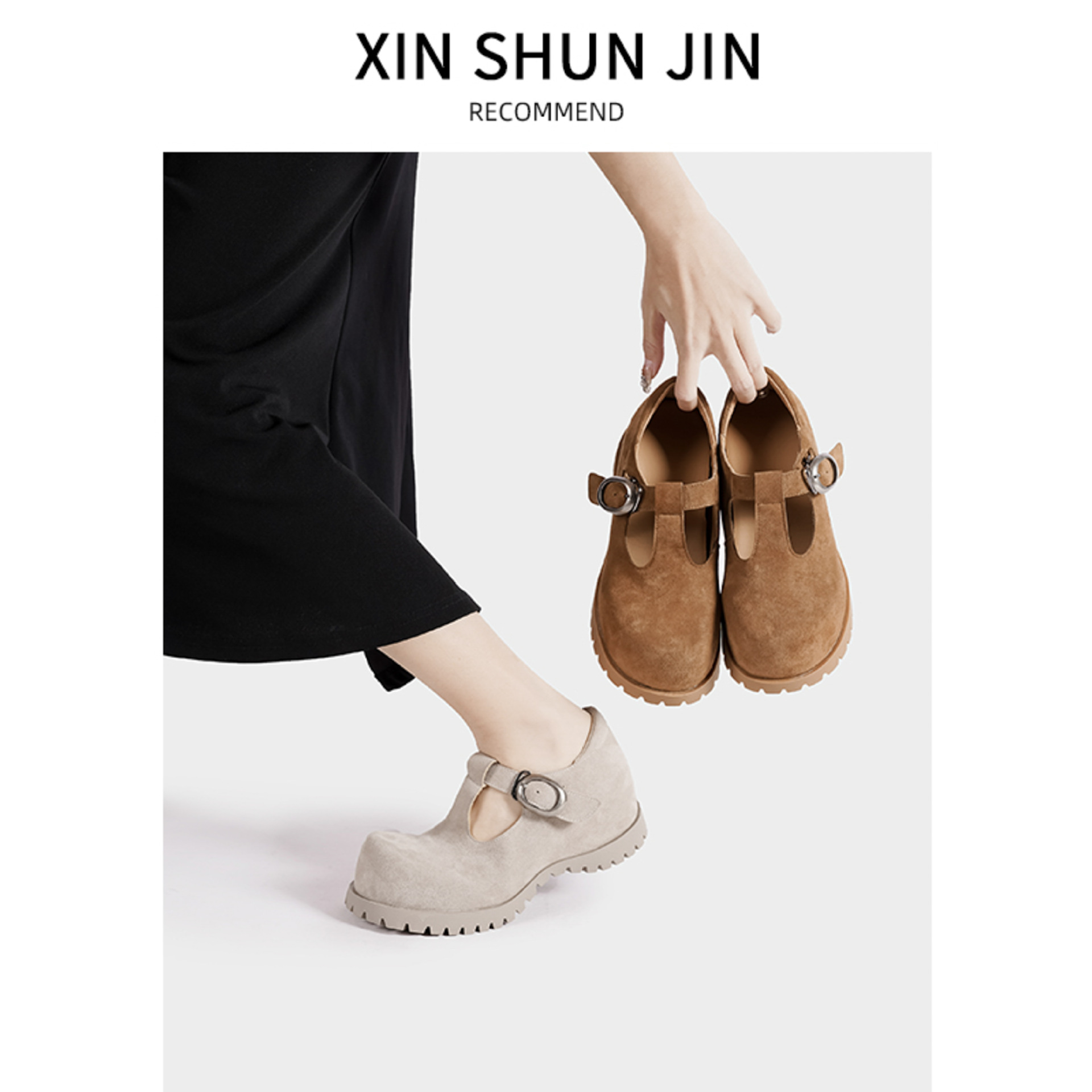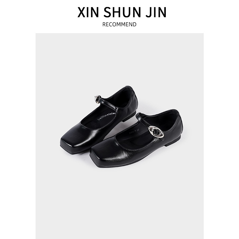 2025新型aw大衆設計一字バックル角頭復古メアリー珍靴女浅口平底靴女靴