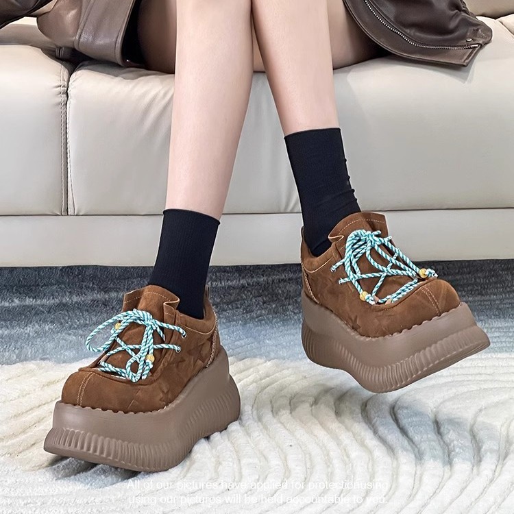 大頭松餅の小さい背の厚い底の茶色の靴2025新型の復古の厚い底のベーケンの小さい靴の女性の美ラード