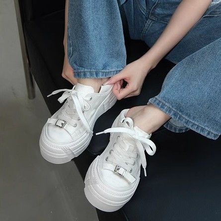厚い底の高くなる白い靴の女性2025春夏の新型の本革は古い色をします。