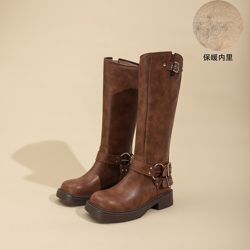 瑪速主義2024新型の厚い底の西部のカウボーイの騎士の靴の女性の冬は膝の復古の長靴のマーティンの靴を越えません。
