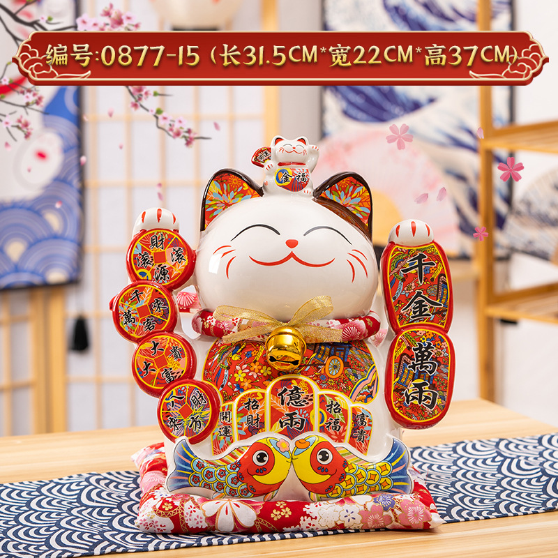12inch 大型招き猫手を振るセラミック装飾品自動手を振るレジ係ホームセンターオープニングギフト