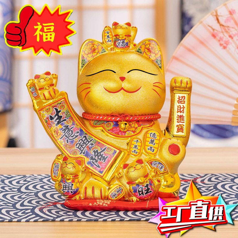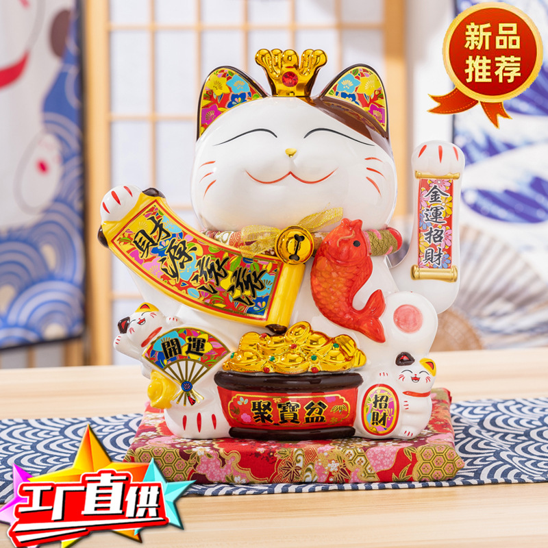 小中号陶磁器招財猫10寸開業大吉置物自動振って商売繁盛招財工芸品プレゼント