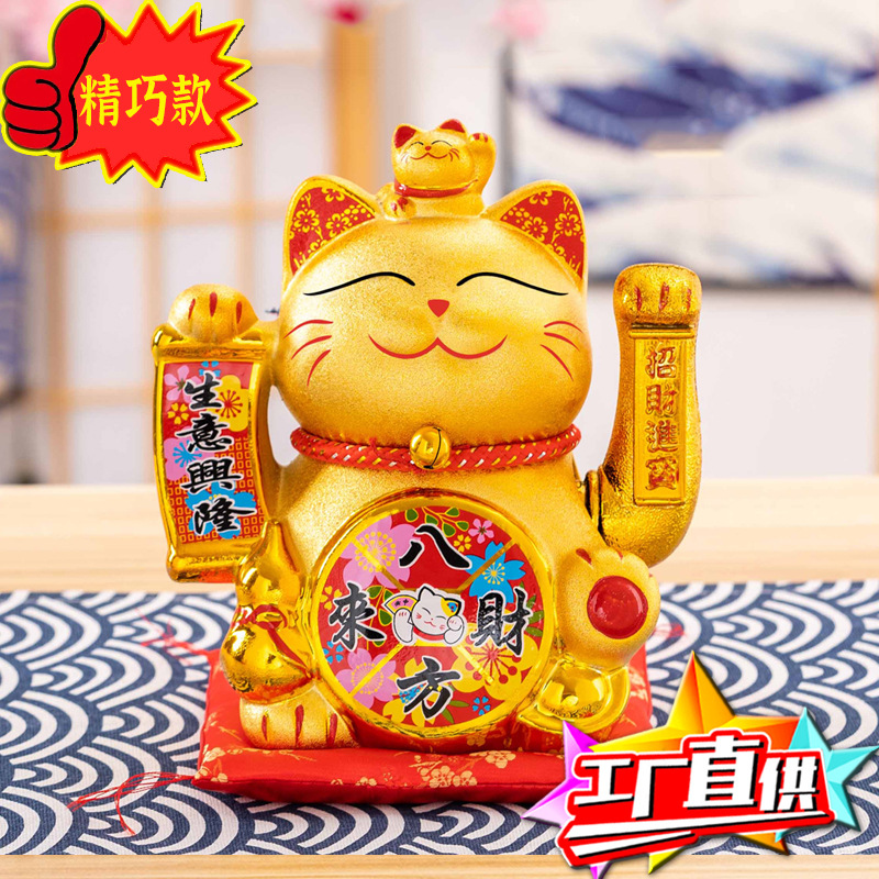 8寸の小さいサイズの招き猫は手を振って陶磁器の置物を飾って自動的にレジの家庭の店舗を招きます。