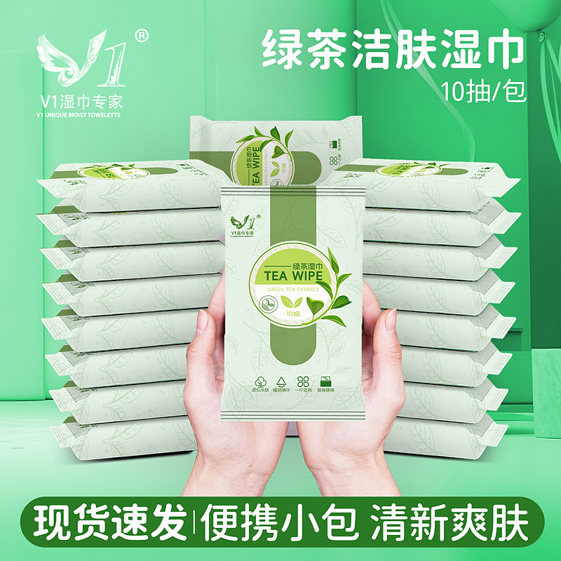 緑茶脱脂ワイプクレンジング水なし学生フェイスクリーニングワイプポータブル 10 パックウェットワイプ卸売