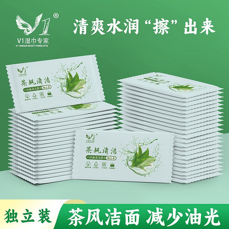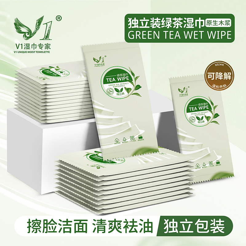 緑茶脱脂ワイプクレンジング水なし学生フェイスクリーニングワイプポータブル独立包装ウェットワイプ卸売