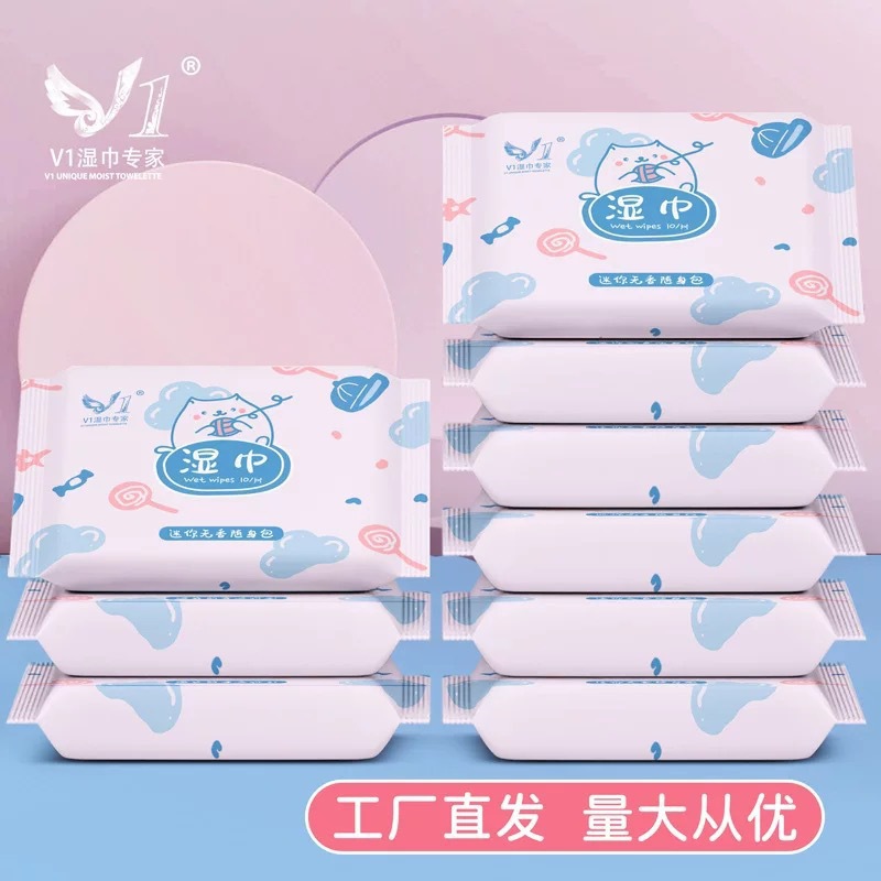 ミニ小包装10枚のウェットティッシュを清潔にします。