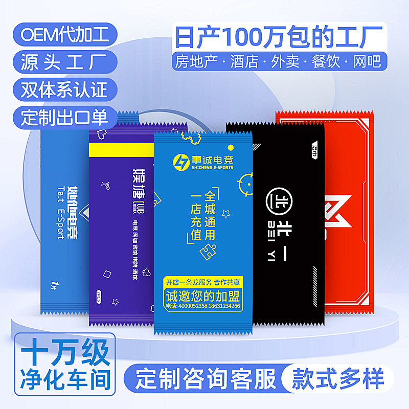 メーカーカスタムロゴ使い捨て一枚のウェットティッシュネットカフェホテル飲食広告ウェットティッシュoemカスタム卸売り
