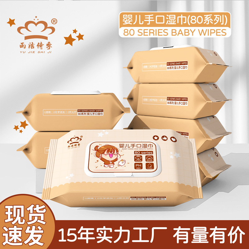 卸売ベビーウェットティッシュ大容量パック、子供用手指・口拭きウェットティッシュ、ガソリンスタンドギフト・広告用ウェットティッシュ、80枚入り