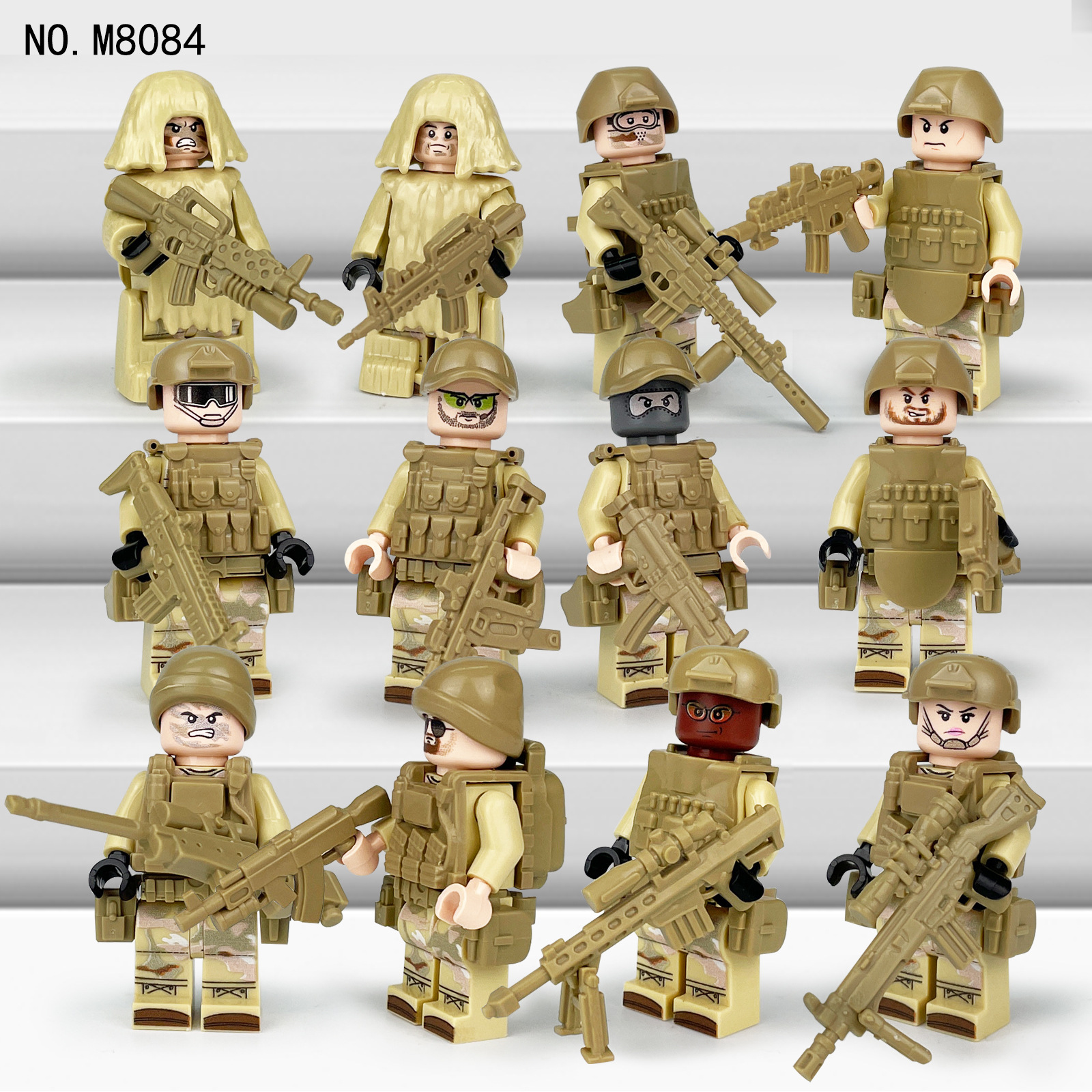 80種類の砂漠軍人彩特殊チームm 8084人の子供の小さな粒子を組み合わせて人形のおもちゃの武器の部品1633を作ります。