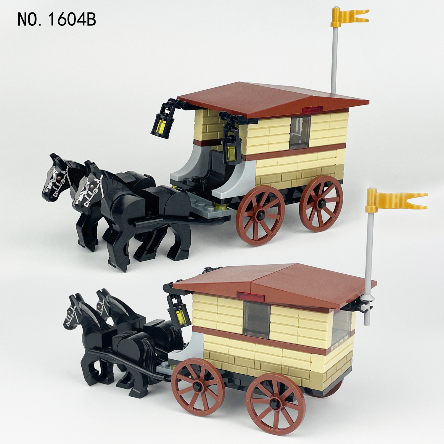 クロスボーダー八種類の馬車1604子供の組み立て積み木玩具黒馬宮廷運搬車ロイヤル中世模型