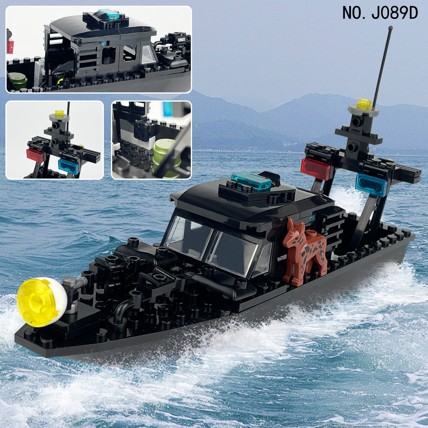 国境を越えた卸売り海狼巡視艇ヨットjfo89d小粒追跡艇児童の積み木玩具部品