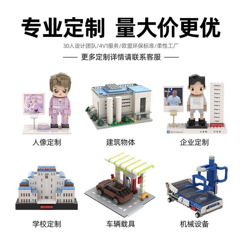 クロスボーダー建築積み木冷蔵庫をカスタマイズして企業の人物ip司齢写真プレゼント玩具病院卸売りを貼ります。