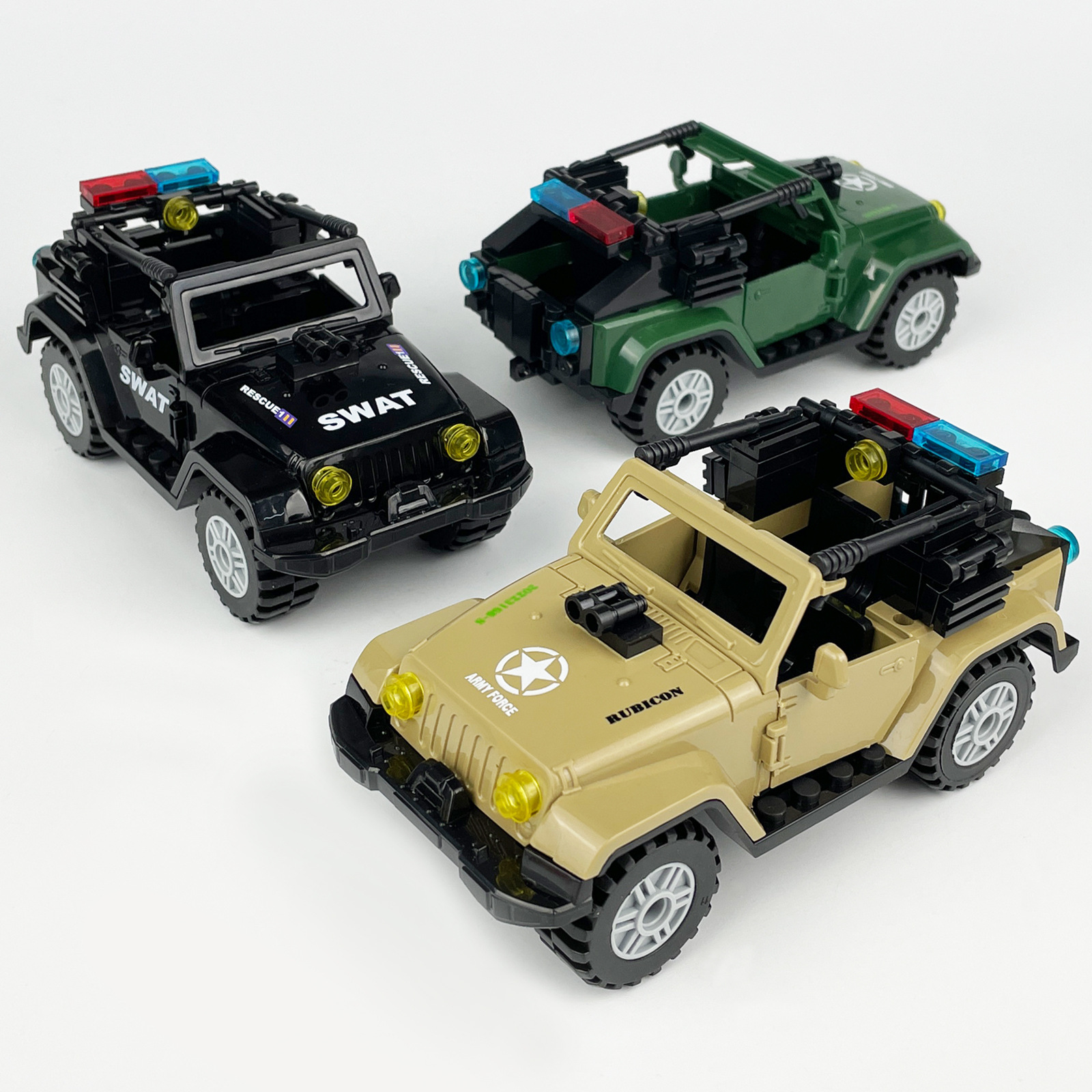 10種類の積み木ジープ特パトカーのオフロード車の子供たちは、小さな粒子のおもちゃの国境を越えた卸売り部品香江を組み立てた