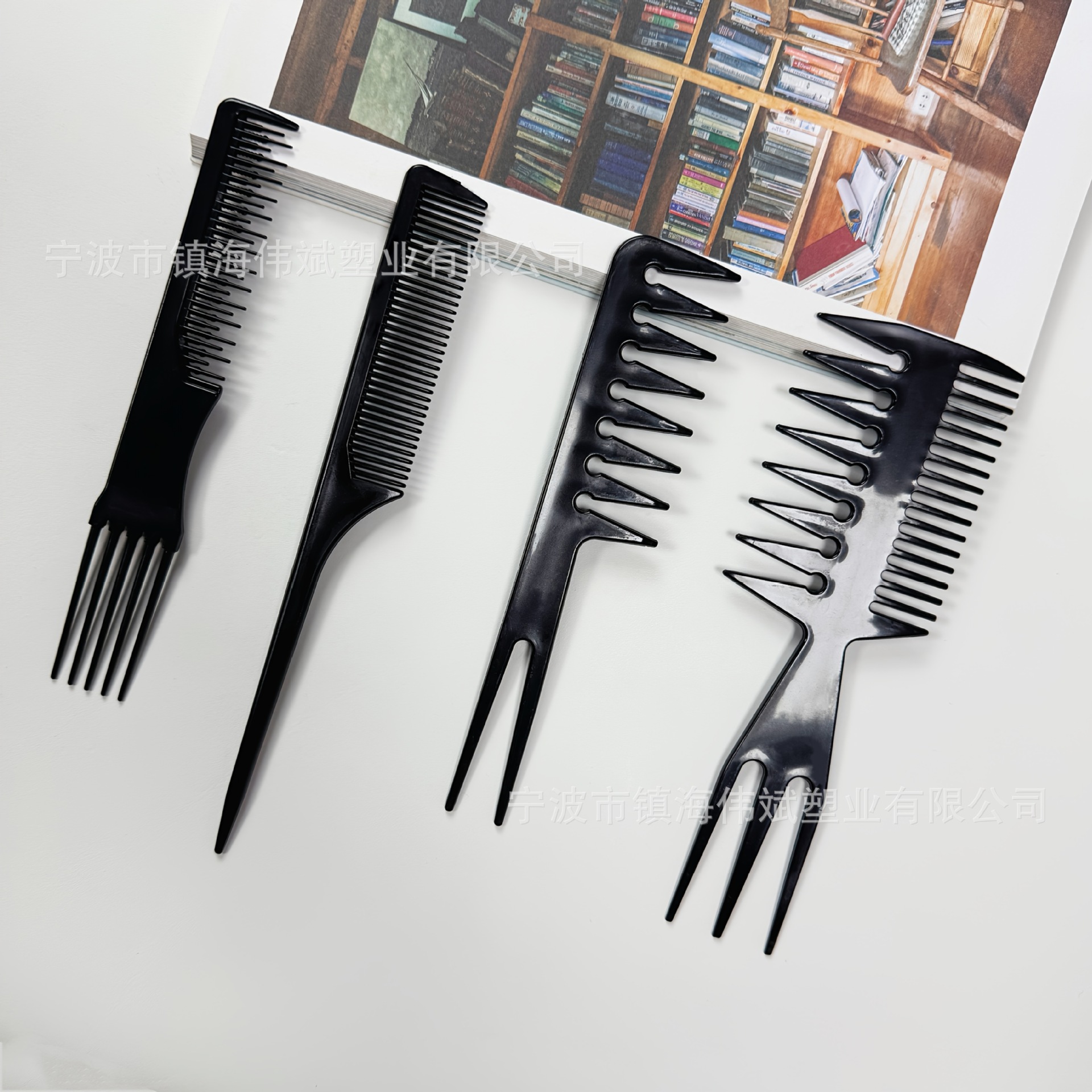 理髪スタイリングツール用のプラスチック製の平らなコーム4点セット、細かい歯と広い歯のヘアカット用の尖った尾、卸売外国貿易クロスボーダー
