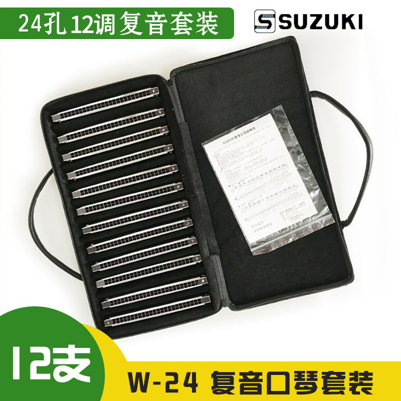 鈴木24穴複音ハーモニカsuzuki12調コンビネーションセットw24初学成人学生演奏