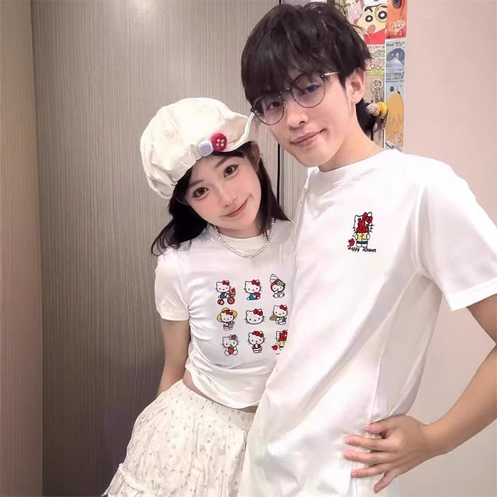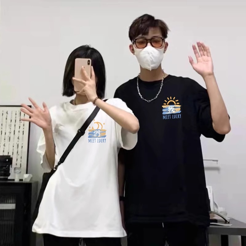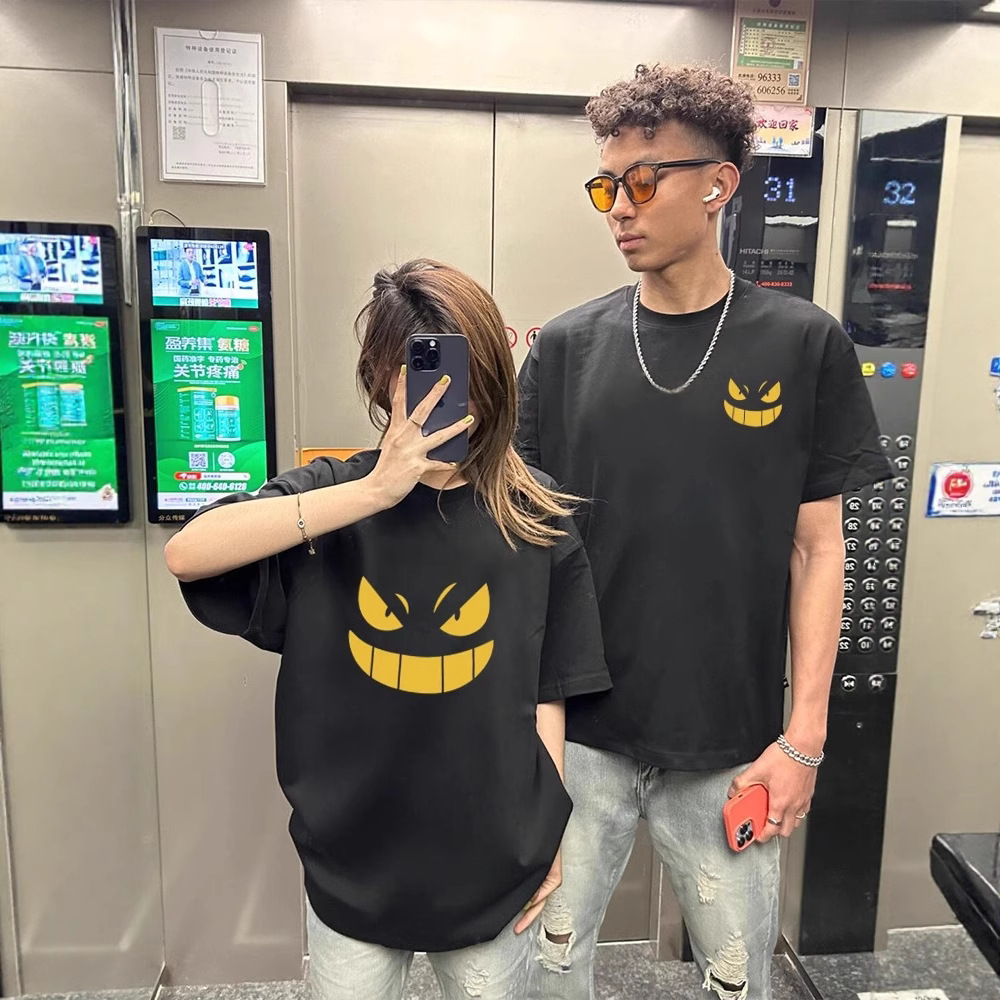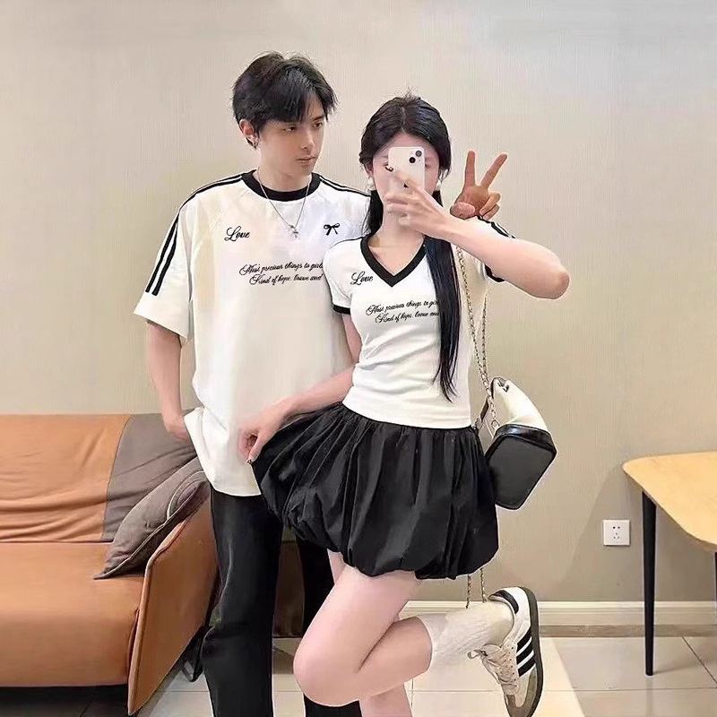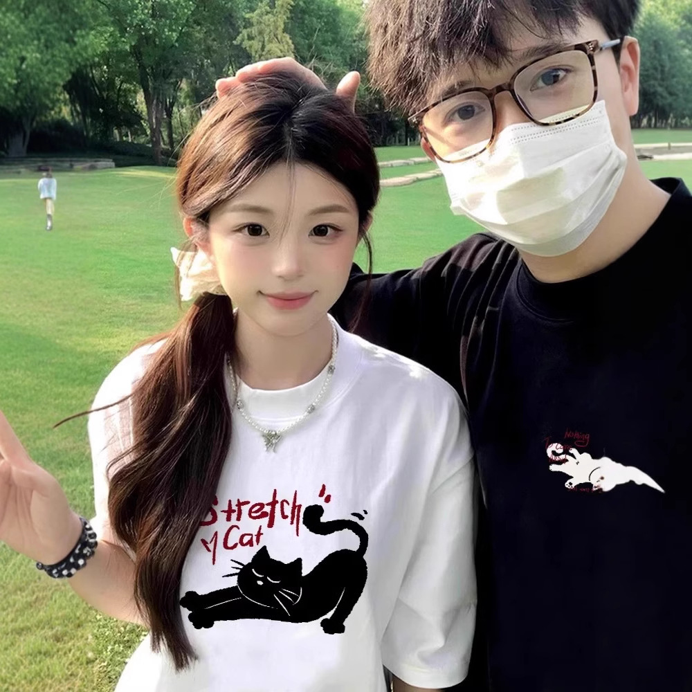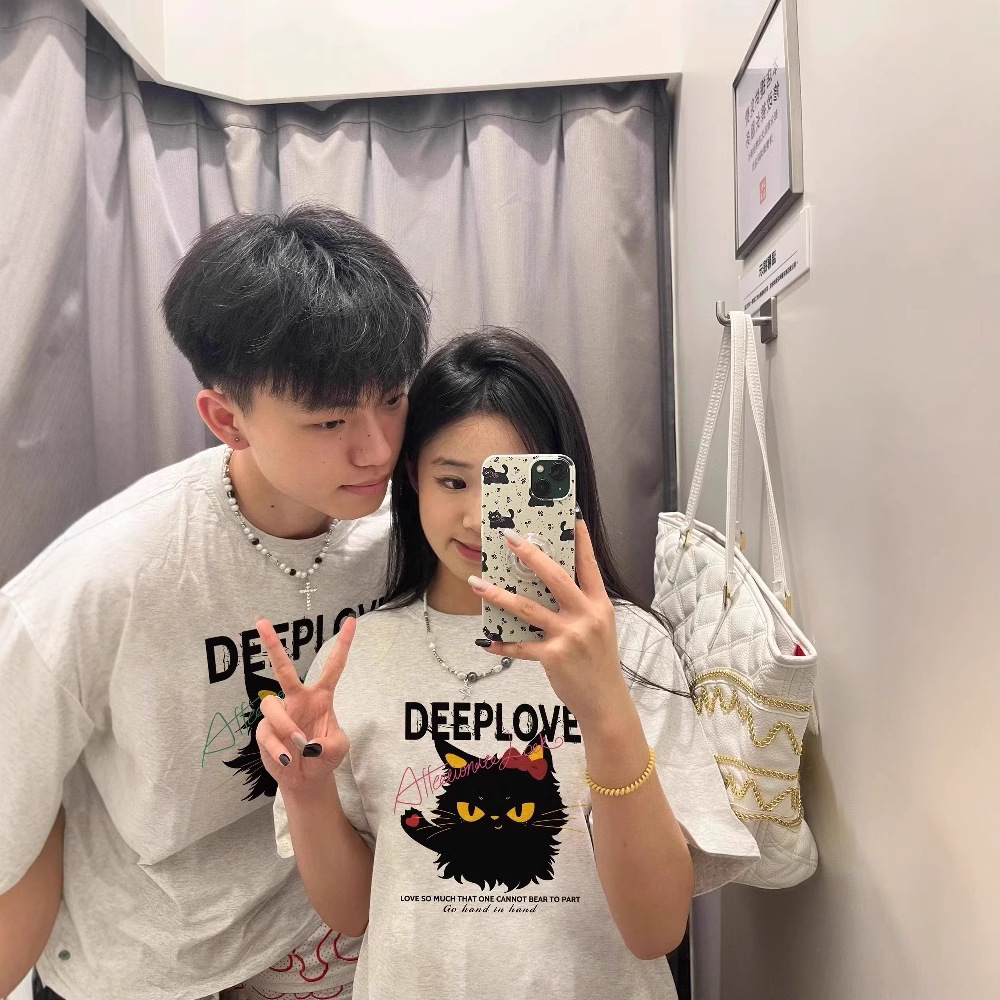 夏の純綿半袖Tシャツ、カップル着用、レイジースタイル、ゆったりとしたニッチデザイン、男女トップス、学生トレンドブランドクラスユニフォーム