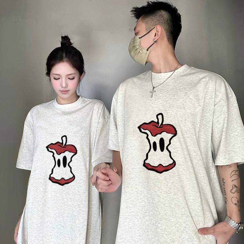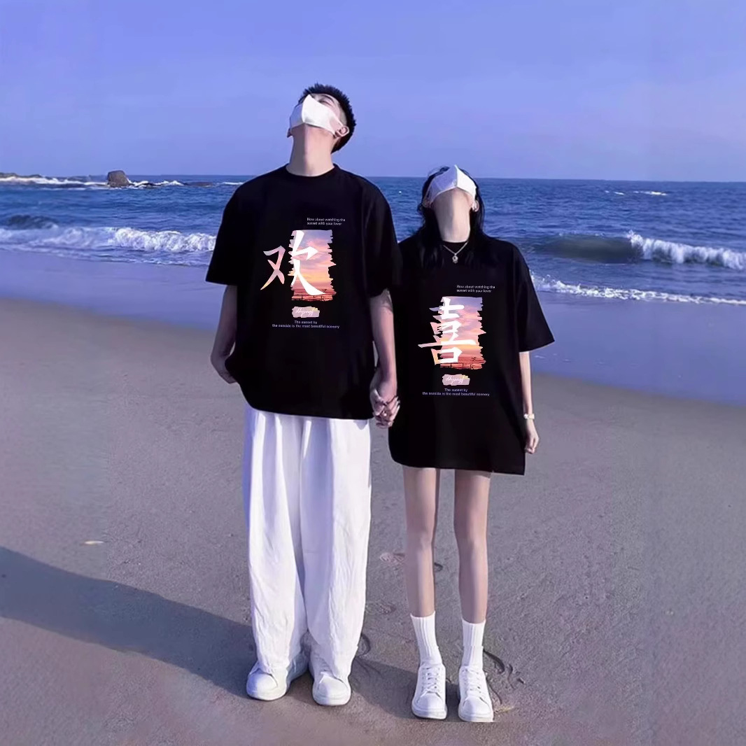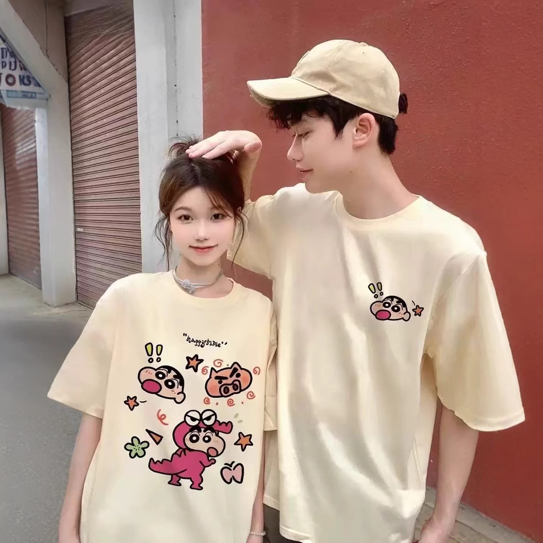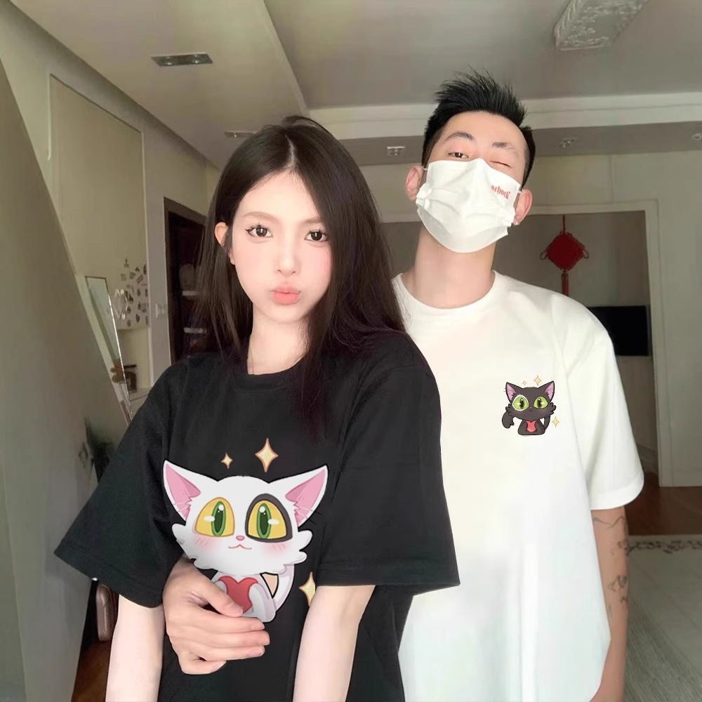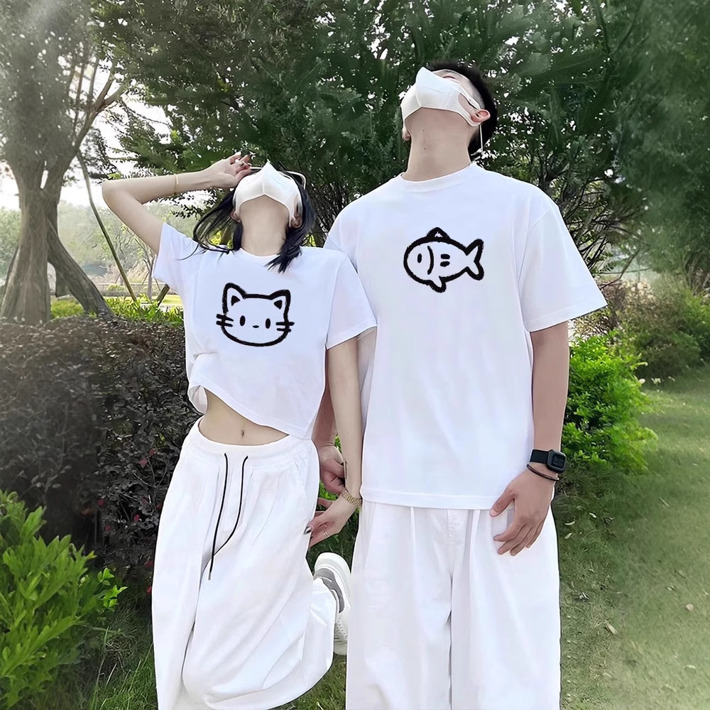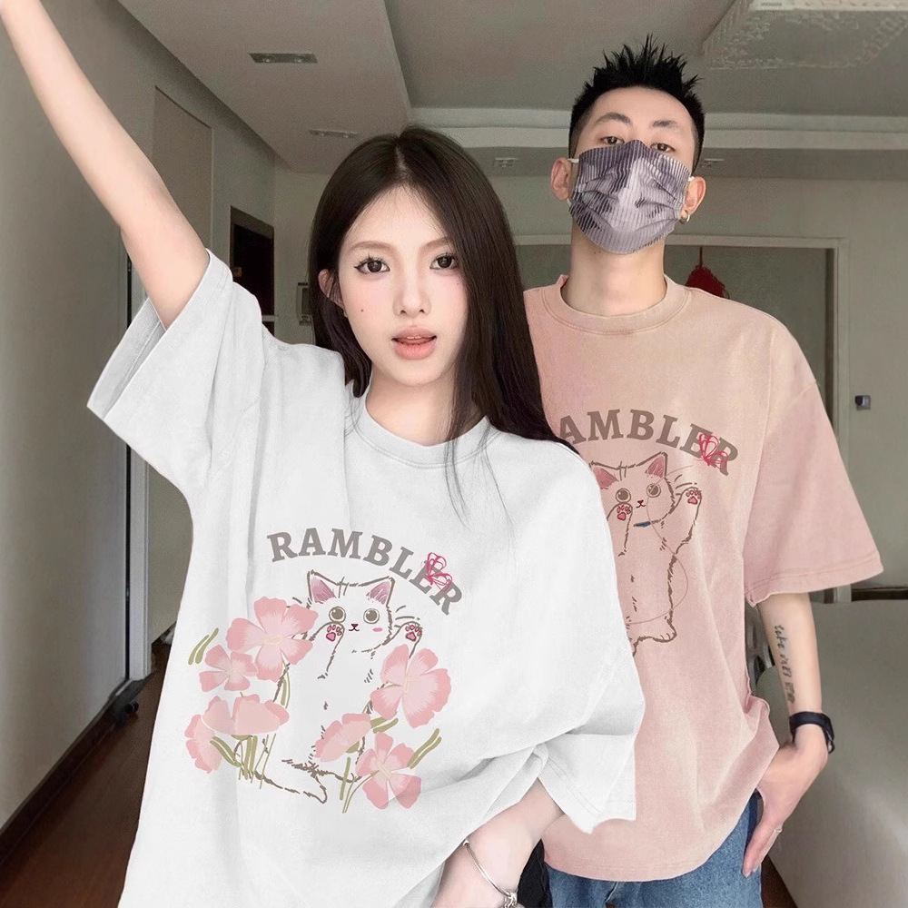 夏の純綿半袖Tシャツ、カップル着用、レイジースタイル、ゆったりとしたニッチデザイン、男女トップス、学生トレンドブランドクラスユニフォーム
