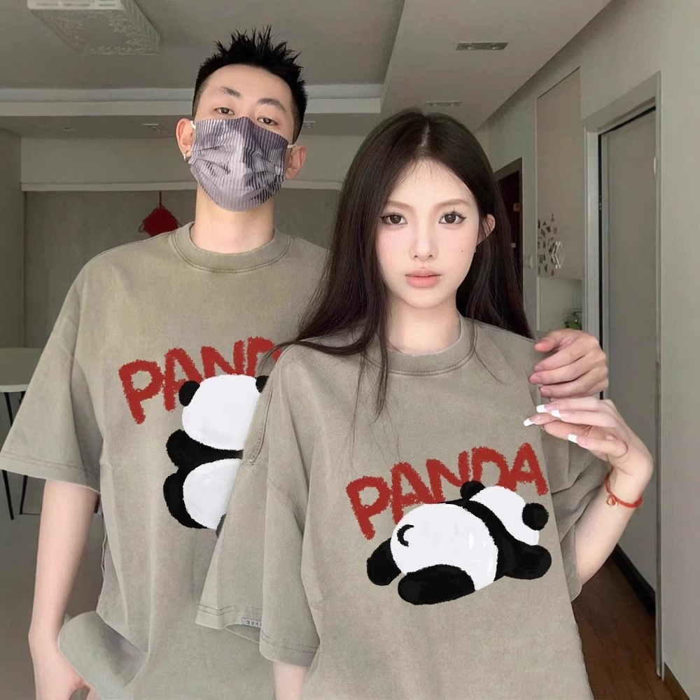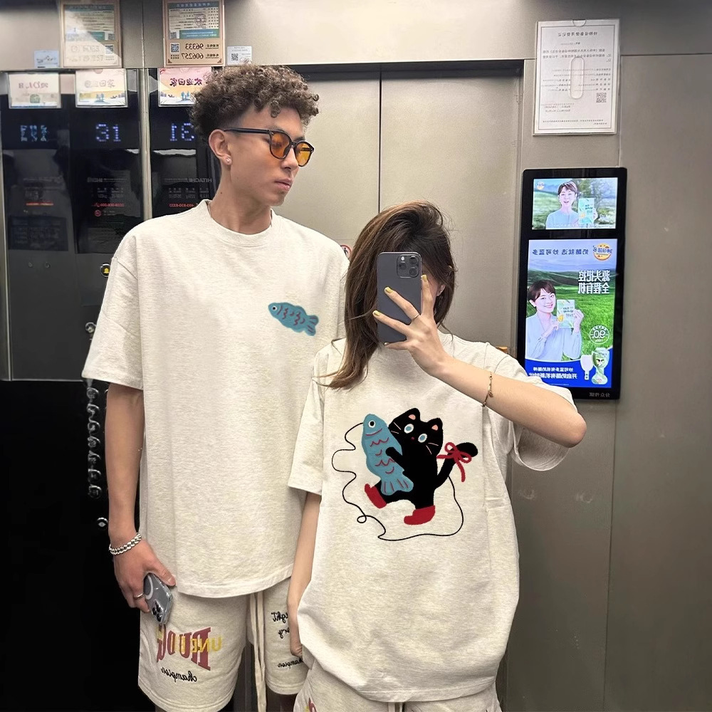 夏の純綿半袖Tシャツカップル着用レイジースタイルルーズニッチデザインメンズとレディーストップス学生トレンディなブランドクラスのユニフォーム