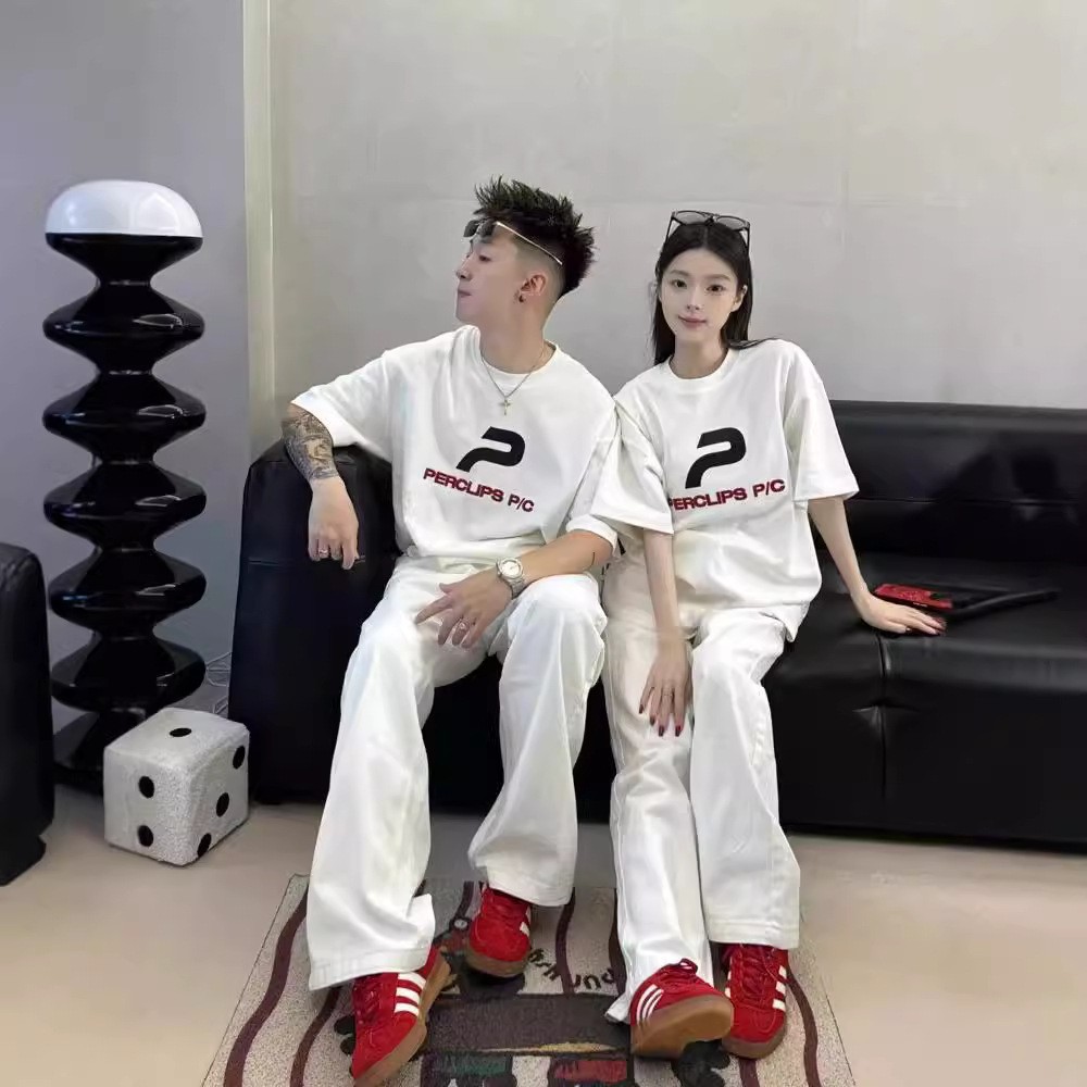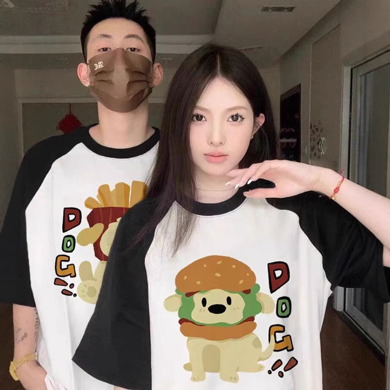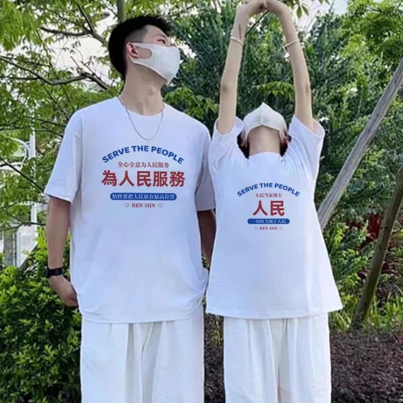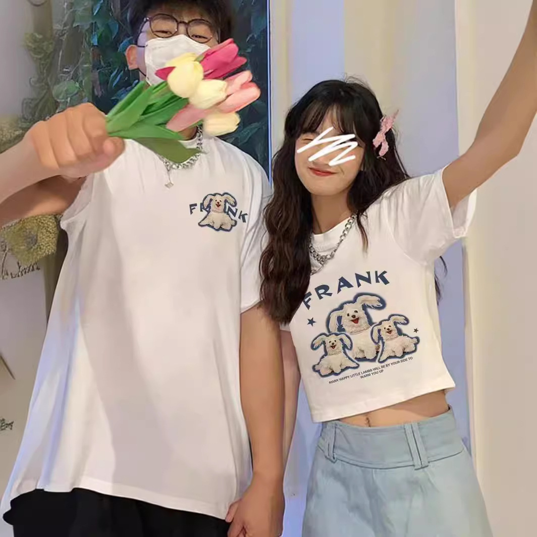 大衆超火純綿男女半袖tシャツ特別なカップル服夏ins風丸襟上着潮牌班服