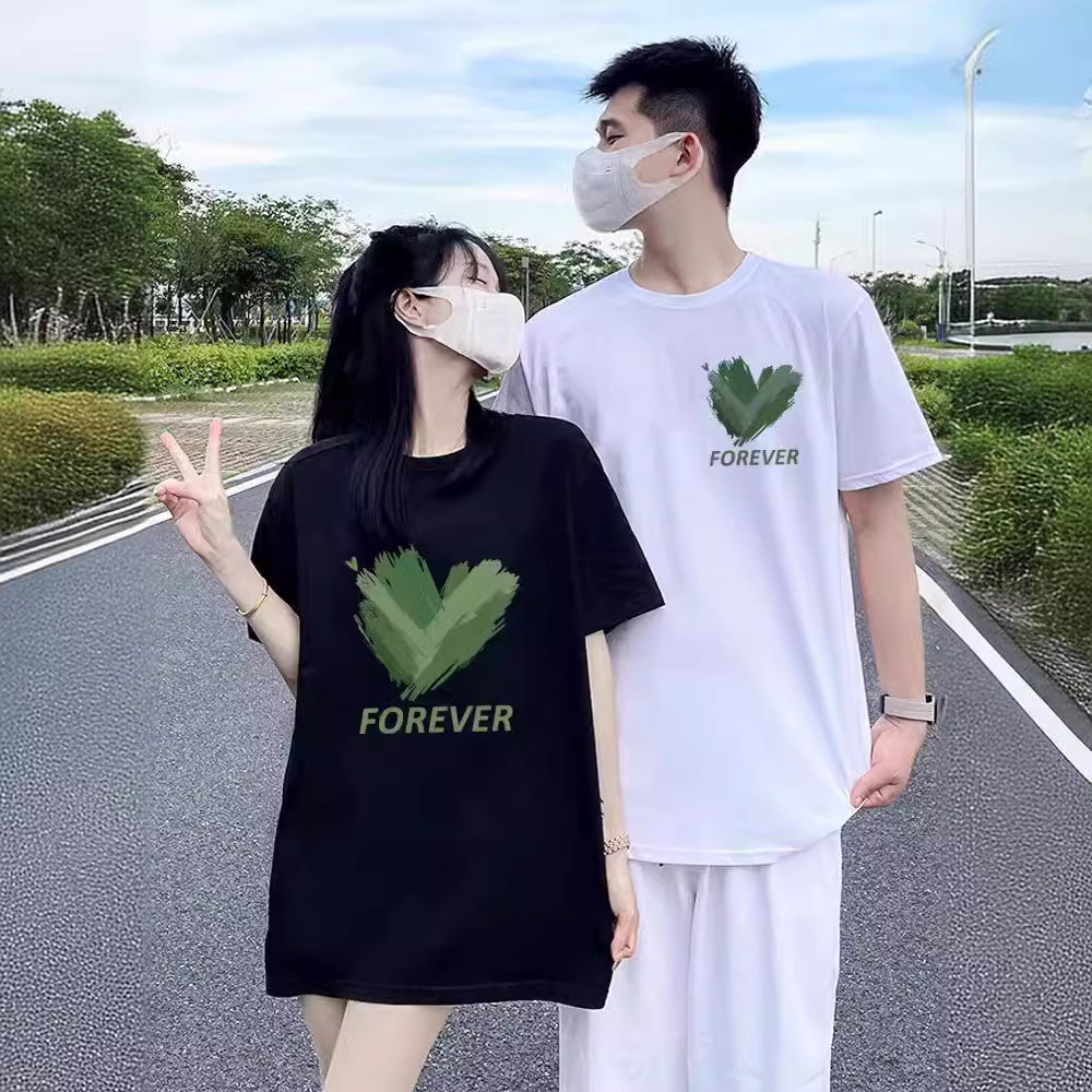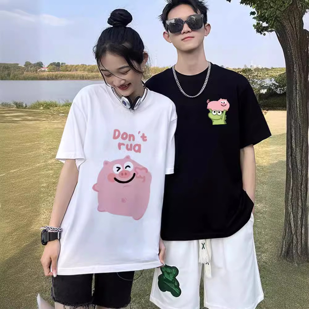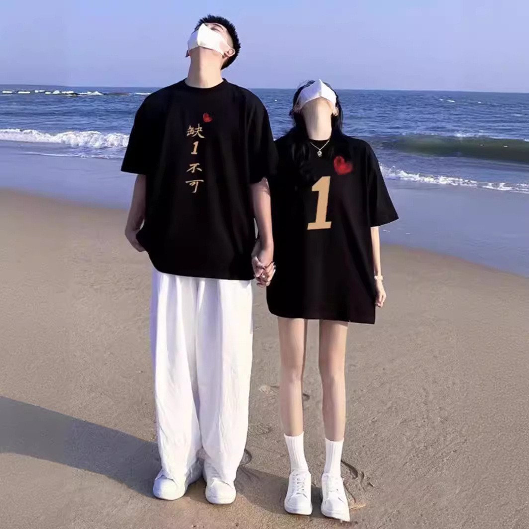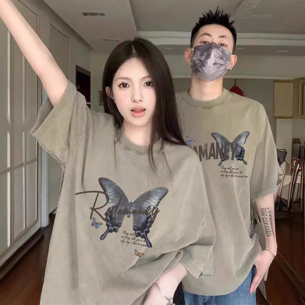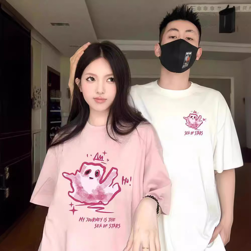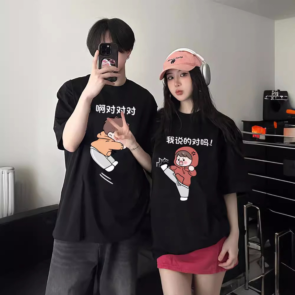 カップル向け純綿半袖Tシャツ、夏の新作、ゆったりとした着痩せ効果、個性的なデザイン、男女兼用トップス、トレンドブランド、クラス服