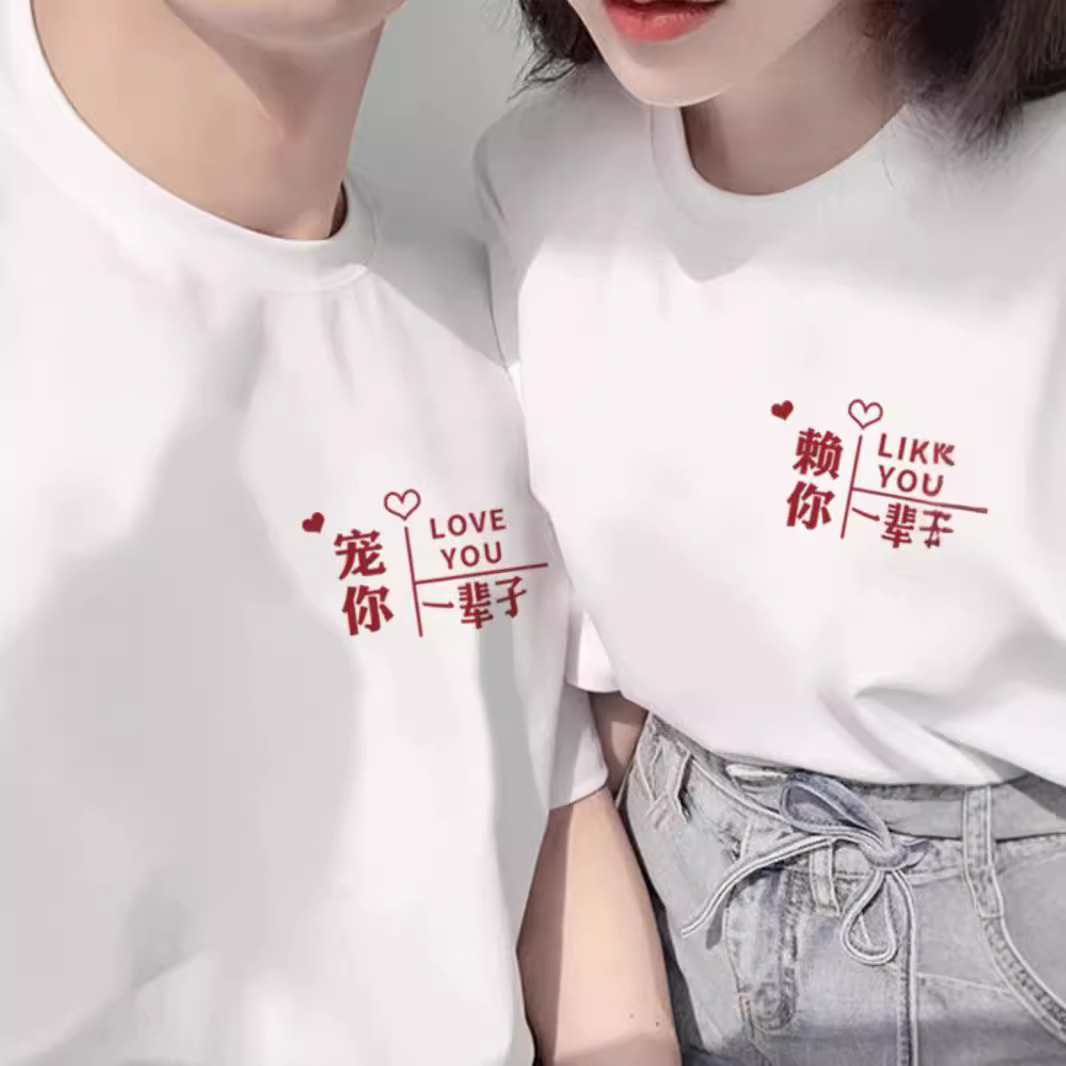 大衆超火純綿男女半袖tシャツ特別なカップル服夏ins風丸襟上着潮牌班服