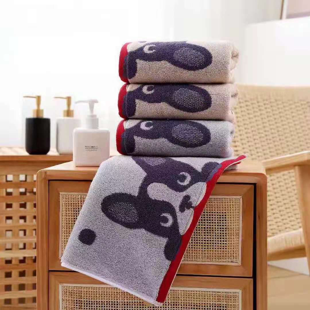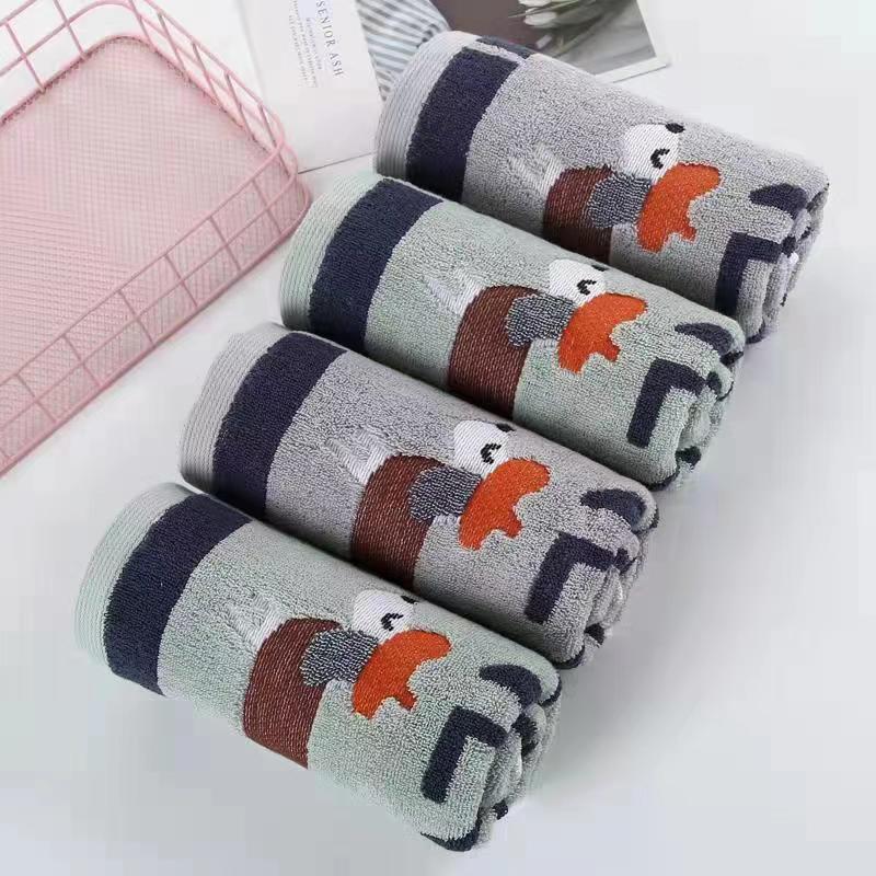 現物卸売りは純綿タオルを共同購入して顔を洗って快適な濃い色の漫画のアルファベットの生活用品の良い綿の良いティッシュの刺繍の字を洗います。