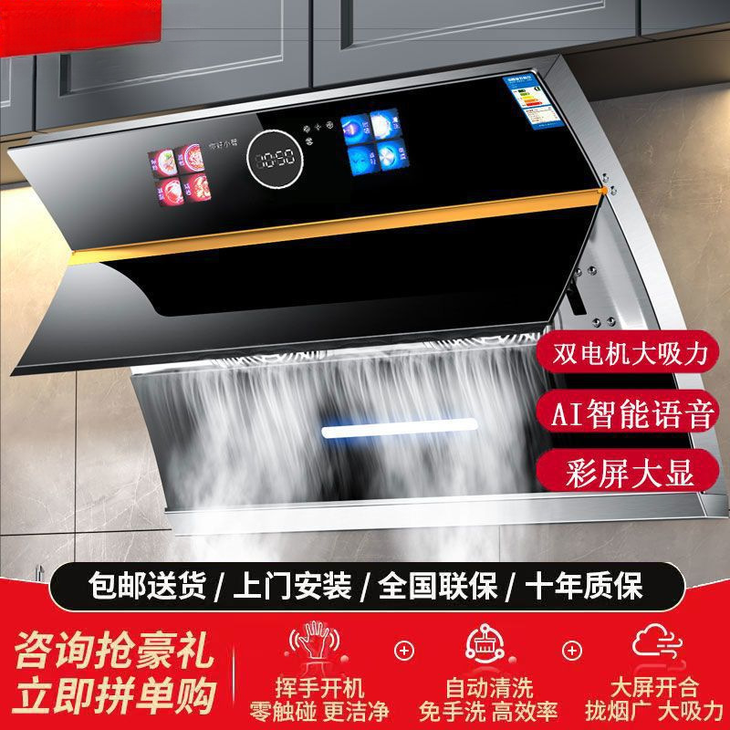 家庭用bluetoothカラースクリーン側吸引ダブルモータレンジフードのデュアルコア自動開閉iaスマート音声制御卸売り
