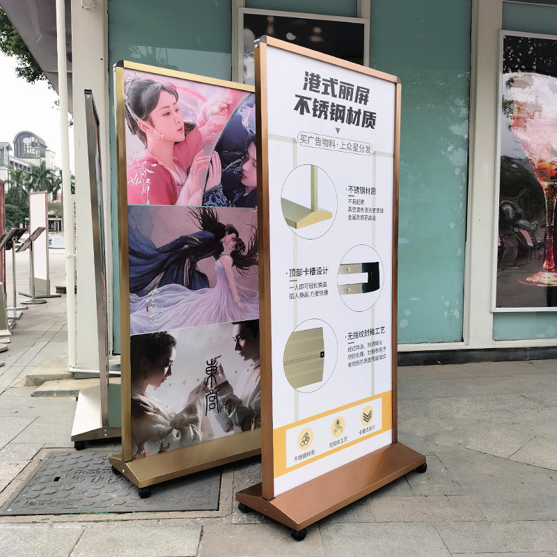 ステンレス屋外防水香港式スクリーン床看板学校デパートkt板立式高級麗萍展示棚