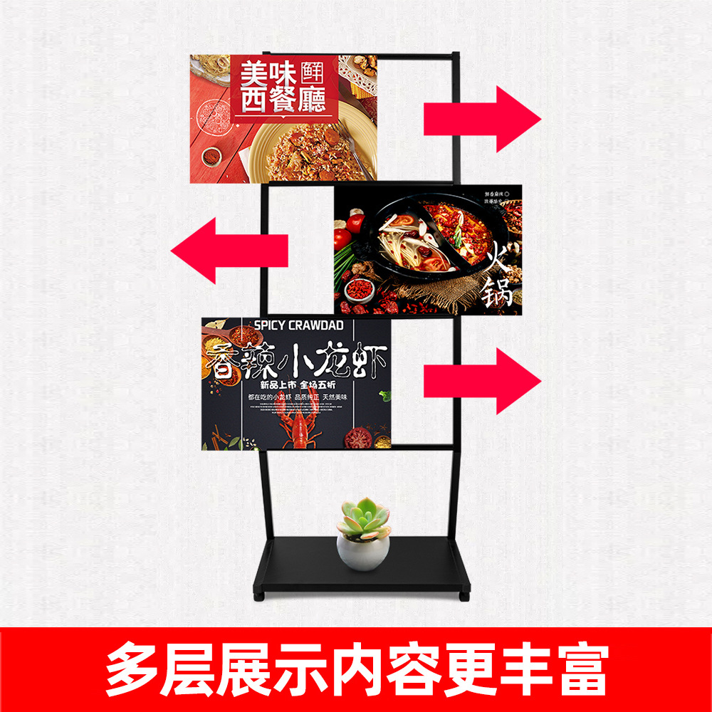 ホテルメニューメニュー展示ブランド店の入り口に看板を立てて床置き式移動ポスター棚の宣伝棚を立てます。