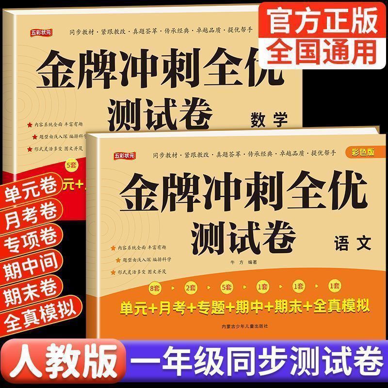1年生用中国語と数学の同期テスト用紙全セット、人民教育出版の模擬テスト用紙、2024年新版