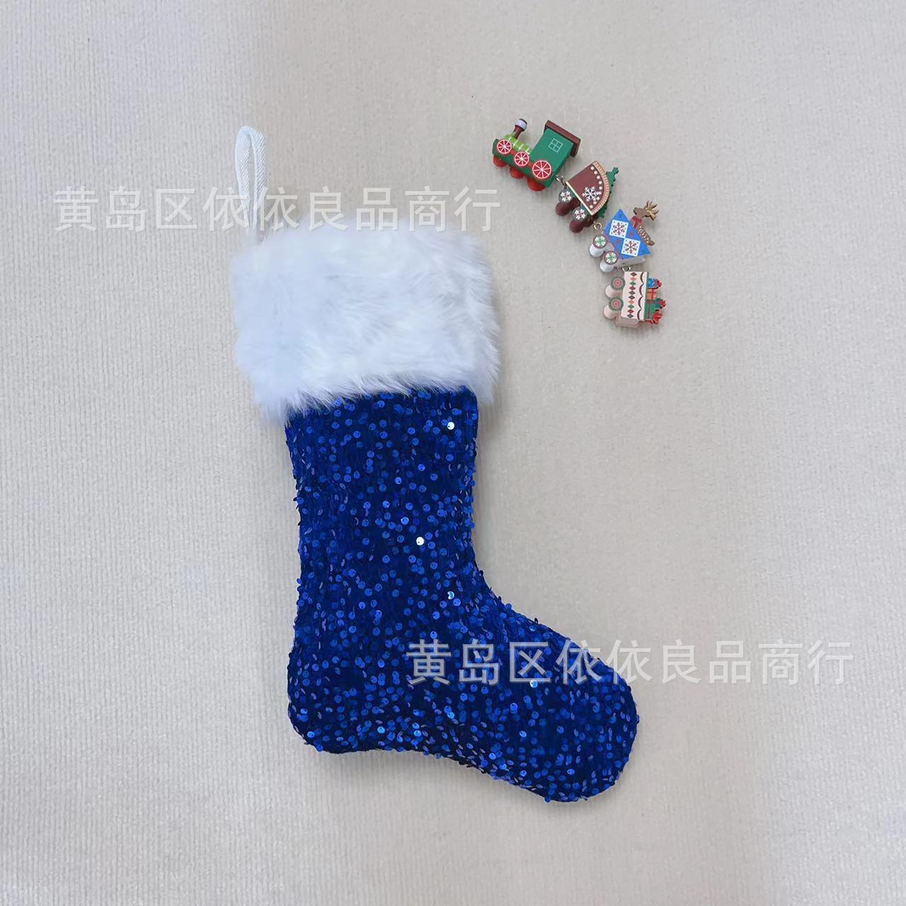 24年クロスボーダー新品ブルー両面スパンコールクリスマスソックスクリスマスキャンデーギフトバッグクリスマス装飾品