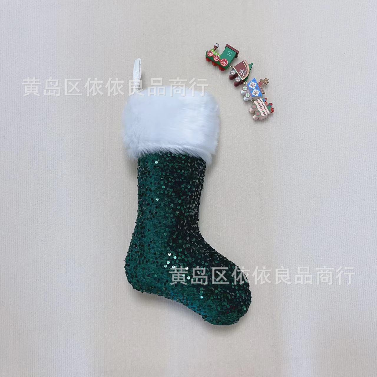 国境を越えた新製品墨緑両面スパンコールクリスマス靴下クリスマスキャンディーギフト袋クリスマスアクセサリー