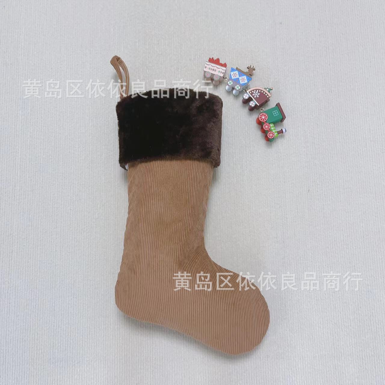 24年クロスボーダー新品コーデュロイクリスマスソックス茶色クリスマスソックスクリスマスアクセサリーキャンデーギフトバッグ