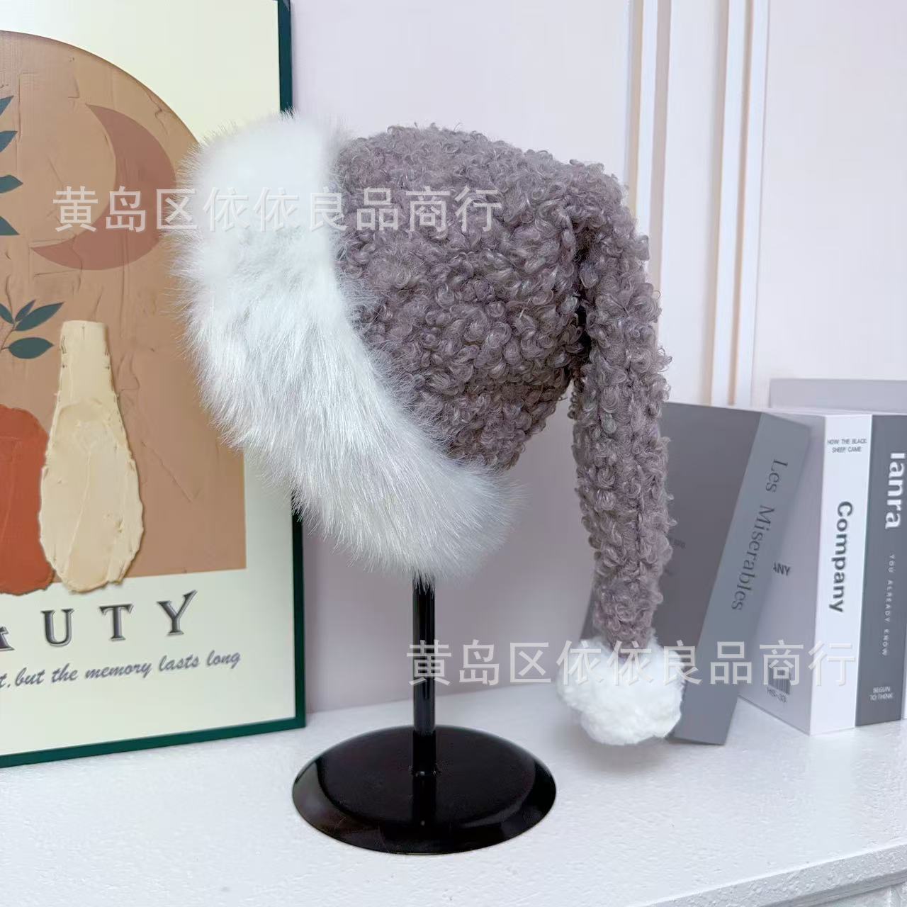 24年クロスボーダー新品ウールロールベルベットクリスマス帽子グレークリスマス帽子クリスマス装飾品