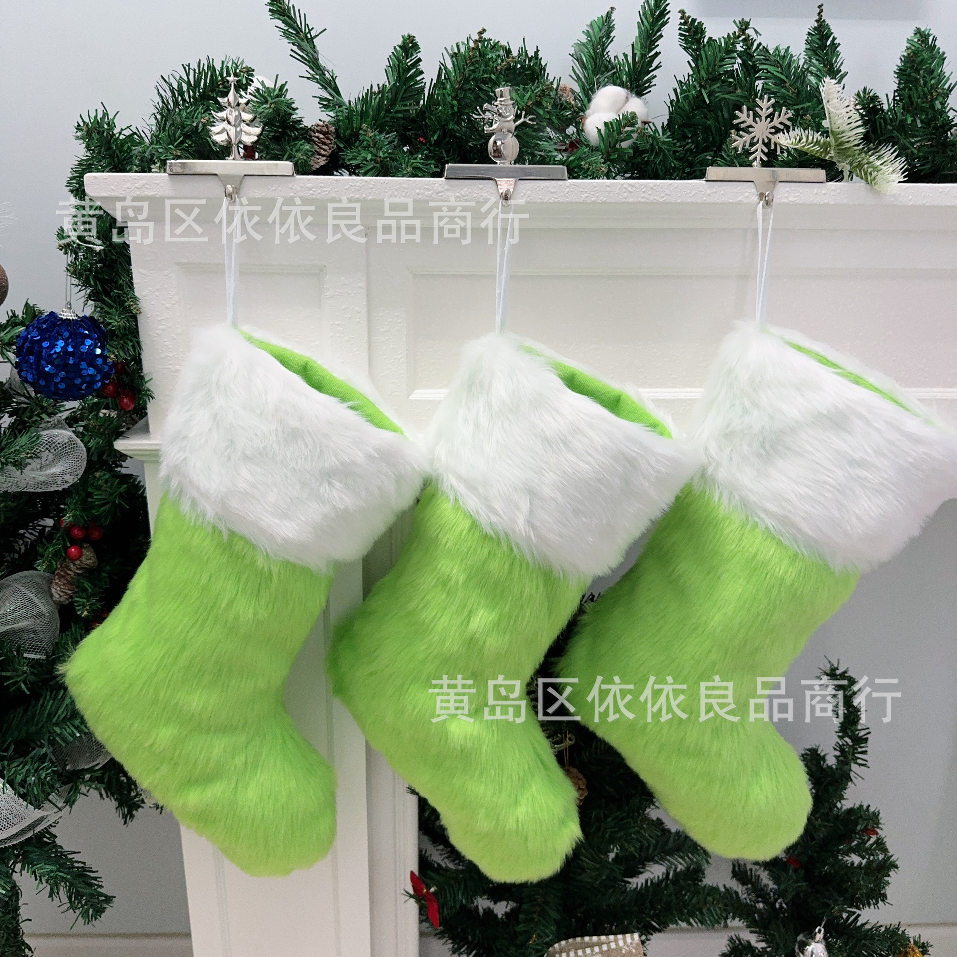 新しいクリスマス装飾品海派毛クリスマス靴下祝日キャンディークリスマスツリーペンダントプレゼント袋グリーンクリスマス靴下