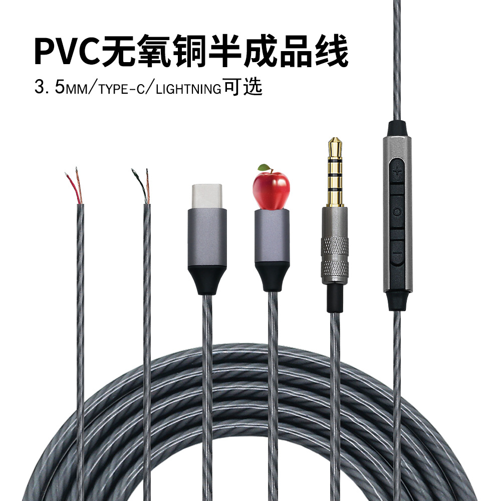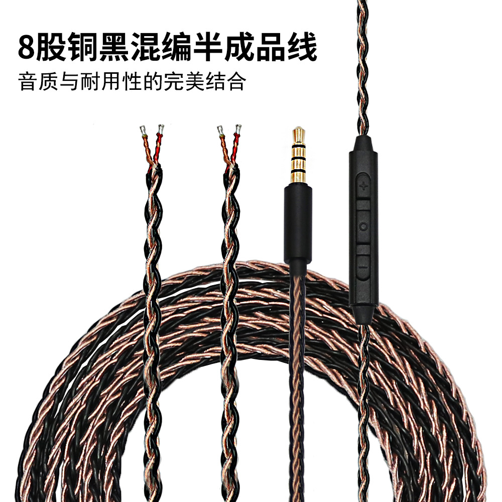 スポット卸売り8株銅黒混編無酸素銅半製品DIYイヤホンアップグレードコードボタン付き麦3.5プラグ