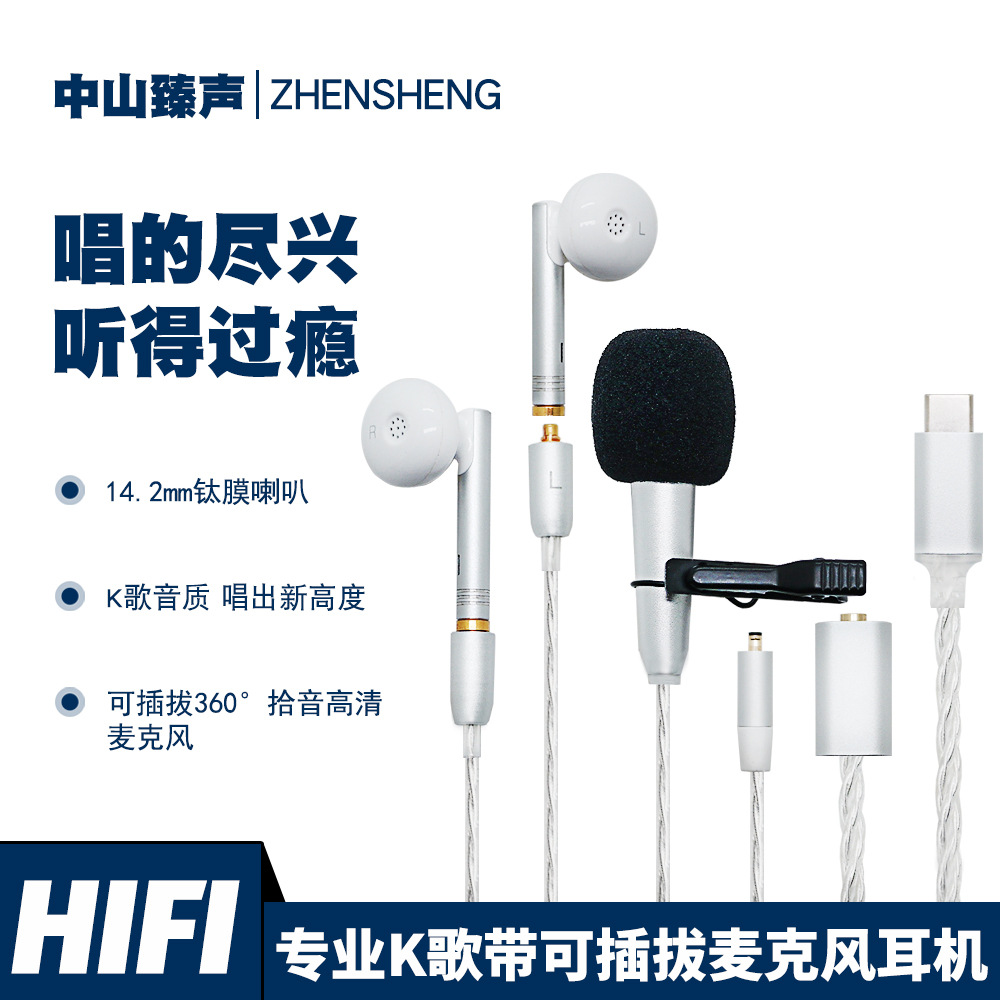 K歌生放送専用入耳式有線イヤホンは、マイクを抜き差ししてリアルタイムで3.5mm/Typecを選択できます。