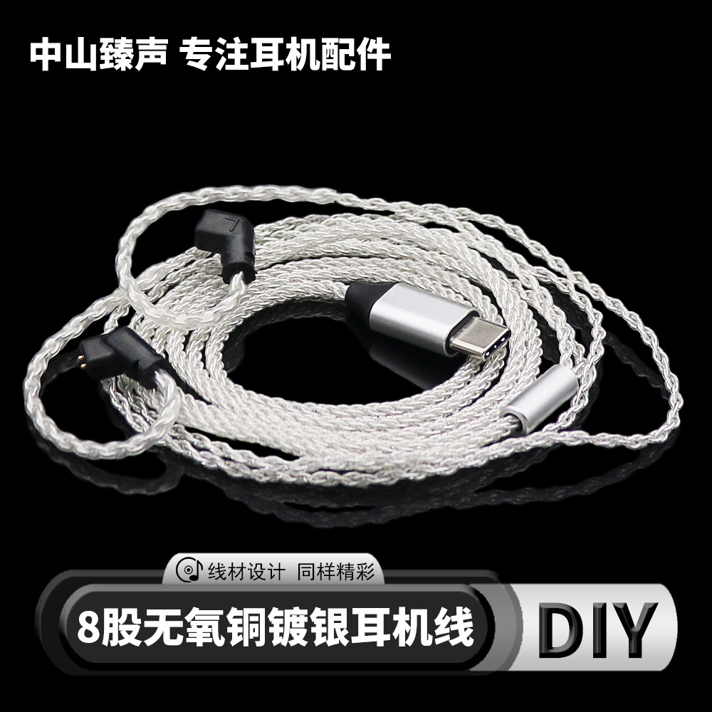 デジタルTYPE-C32ビット8ストランド編み無酸素銅メッキ銀QDCピンヘッドフォン発熱アップグレードラインHIFI音質