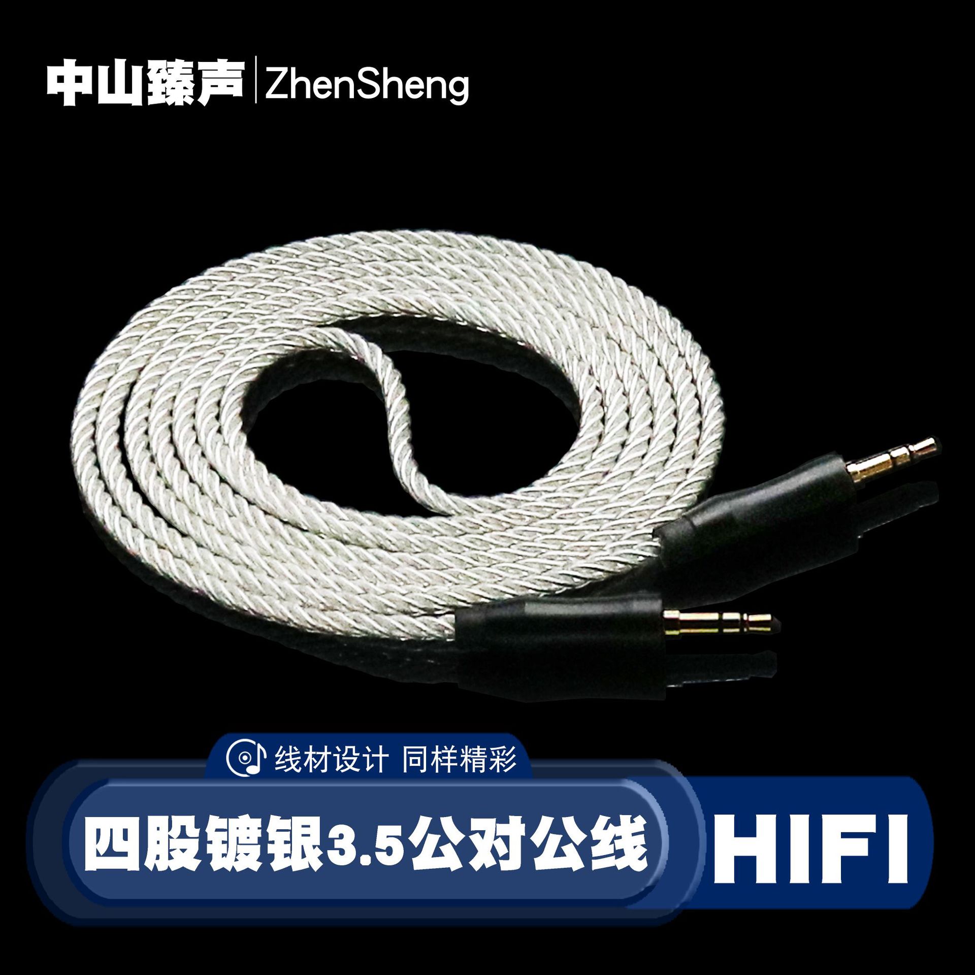 四股銀メッキ3.5公対公オーディオケーブル車載携帯電話パソコン自動車音響ケーブル1.5-2メートル