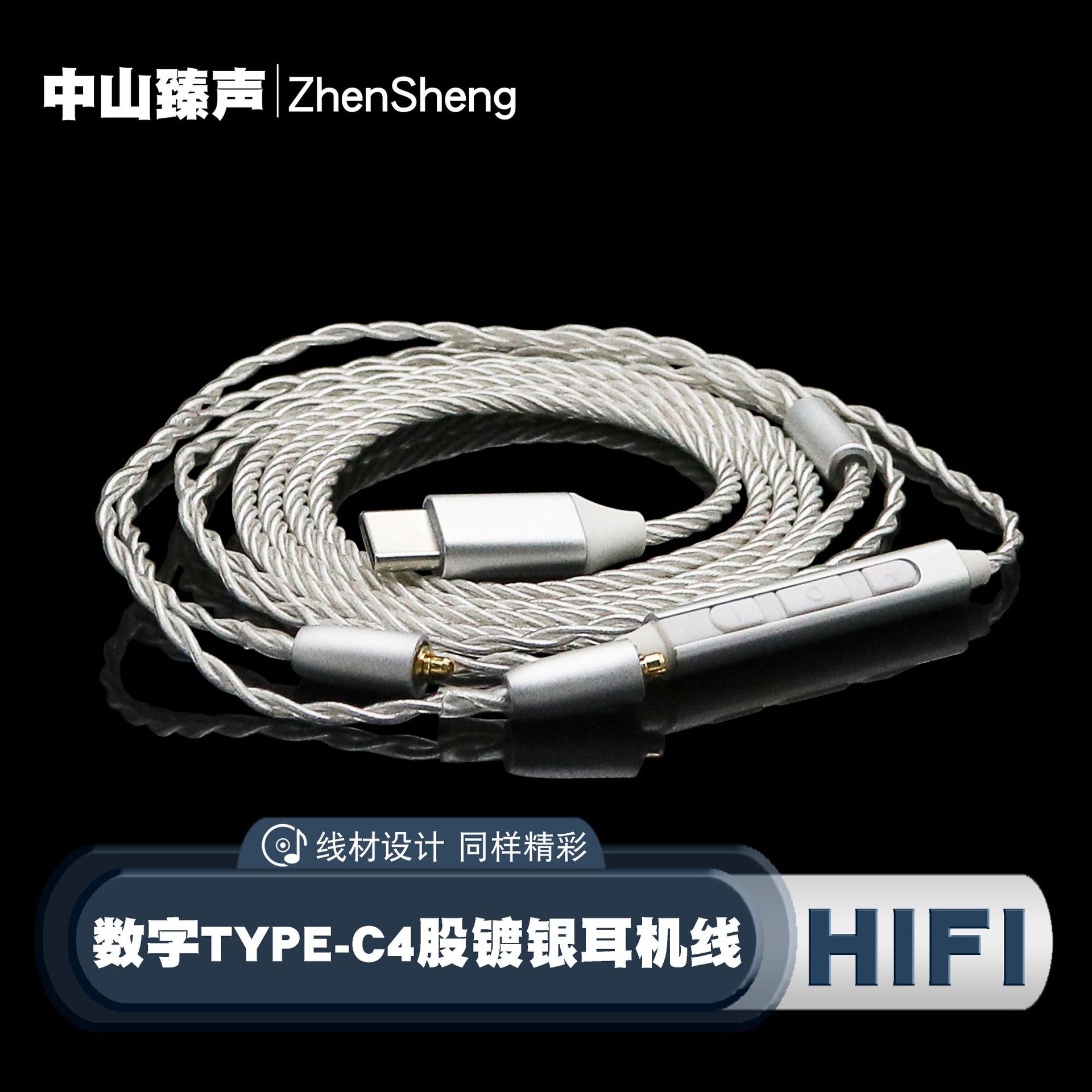 デジタルTYPE-C24位4株銀メッキ三ボタン付き麦MMCXピンヘッドフォンアップグレード線発熱音質