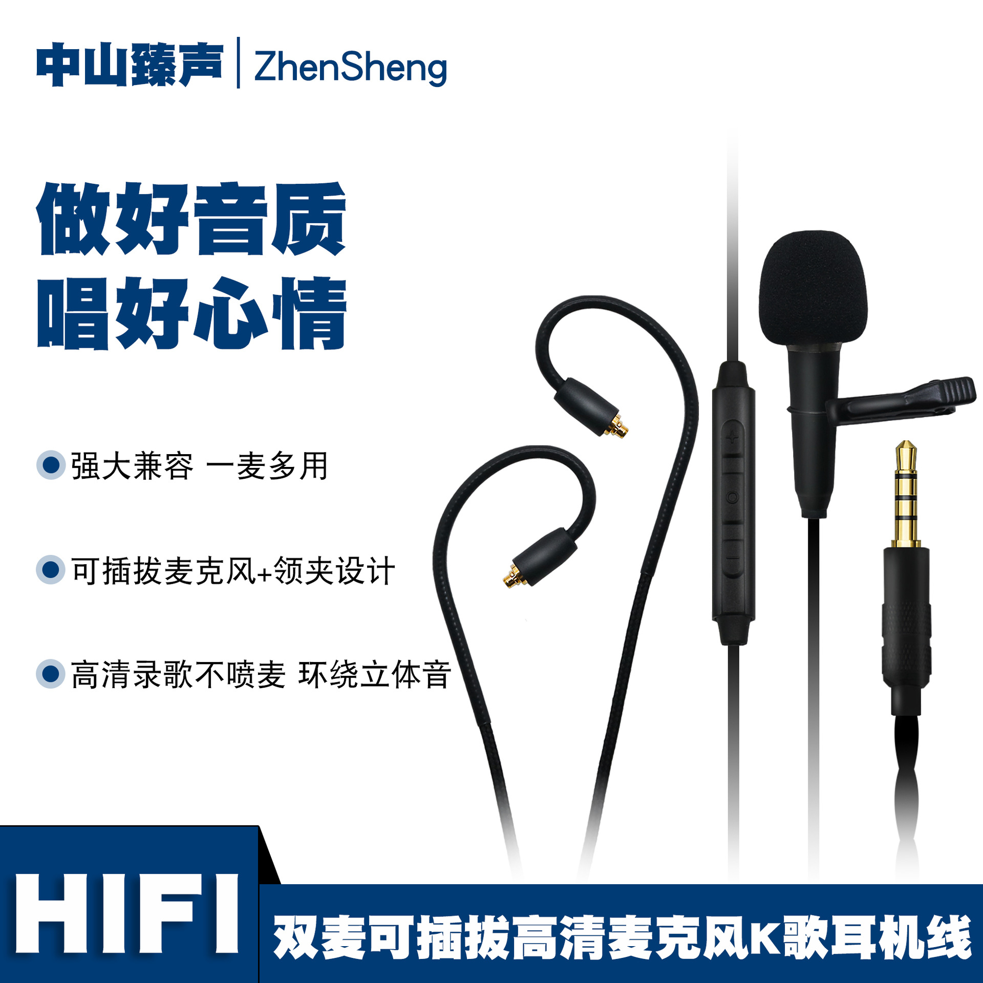 K歌生放送専用入耳式有線イヤホンは、マイクを抜き差ししてリアルタイムで3.5mm/Typecを選択できます。