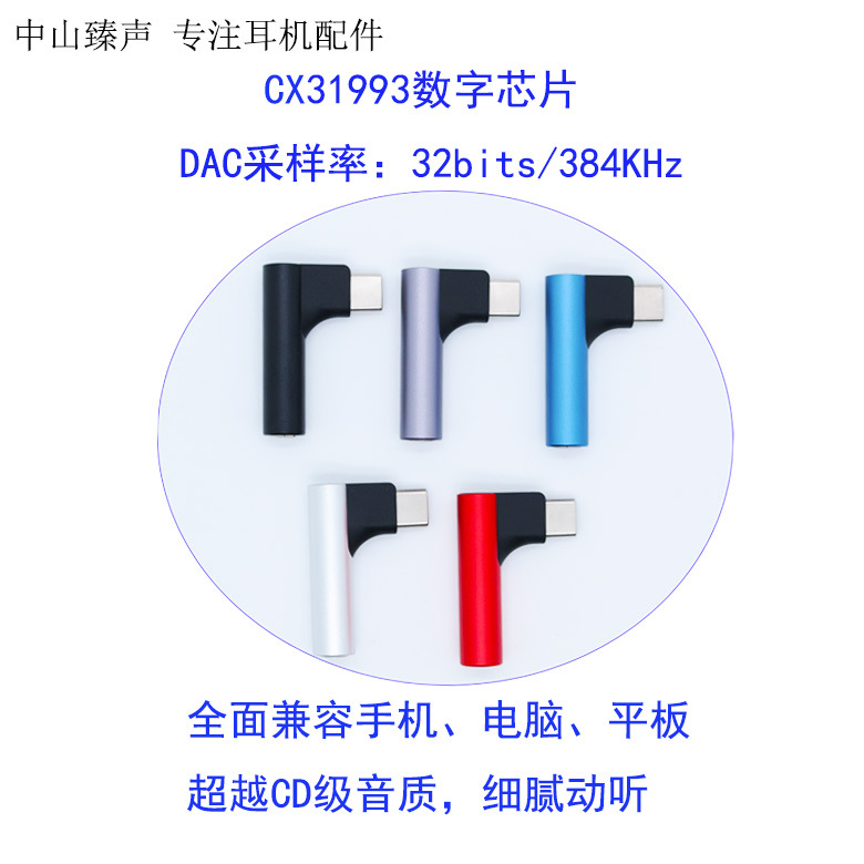 中山臻音type-c回転3.5デジタルオーディオヘッドフォン変換コネクタ32ビットデコード耳置きcx31993チップ