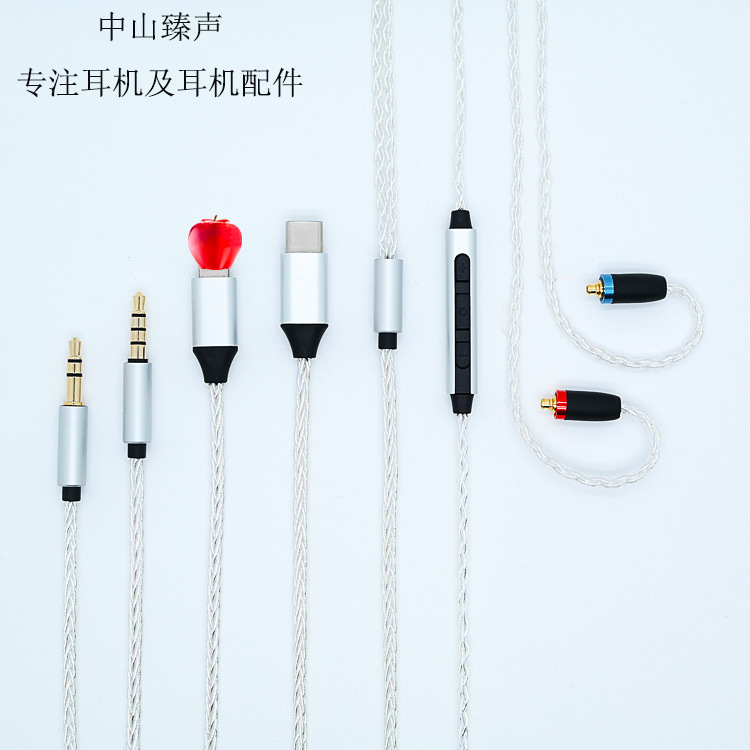 中山臻声8本の銀メッキmmcxイヤホン線はTYPE-Cの麦雷アップグレードラインを適用します。